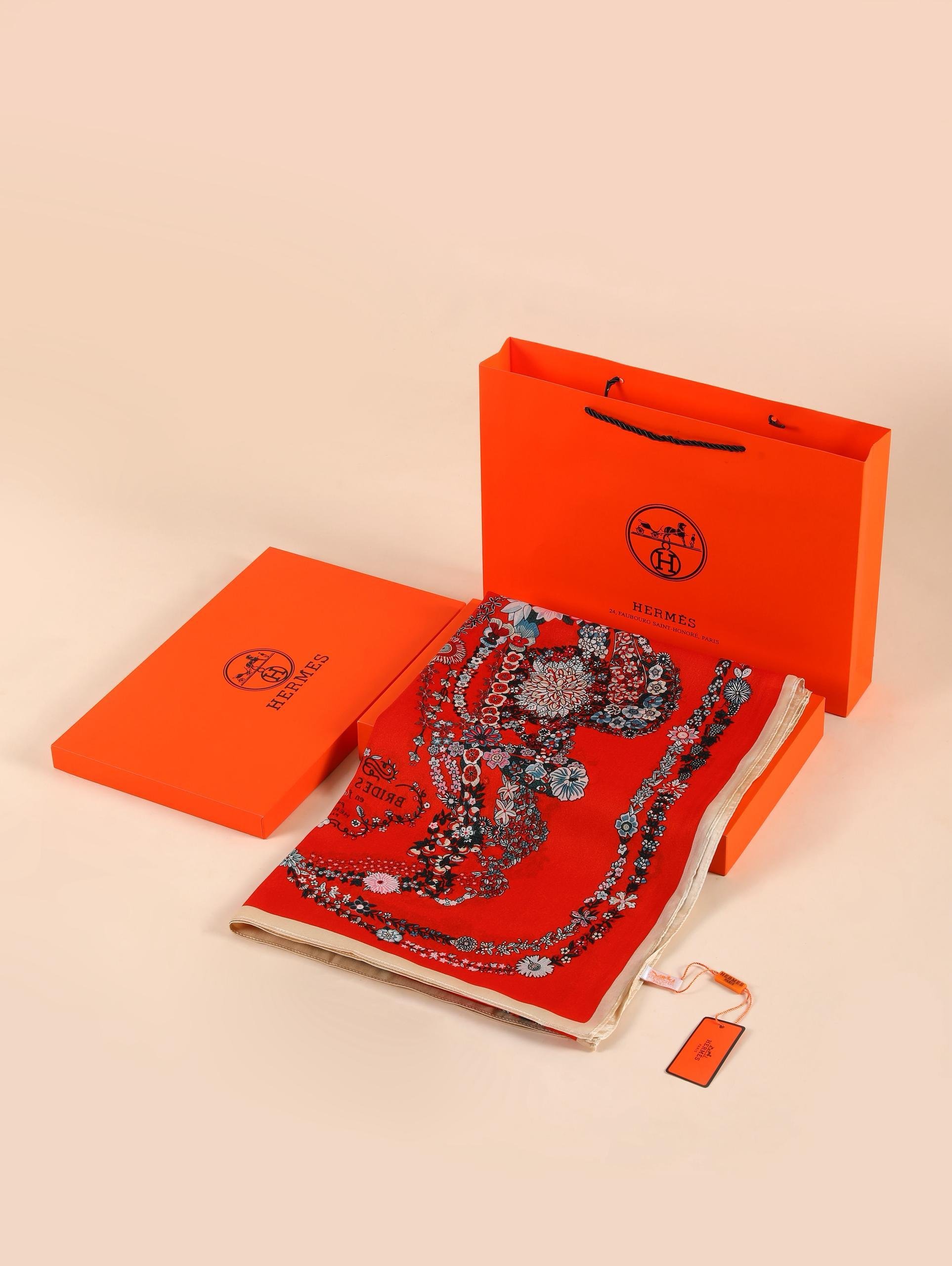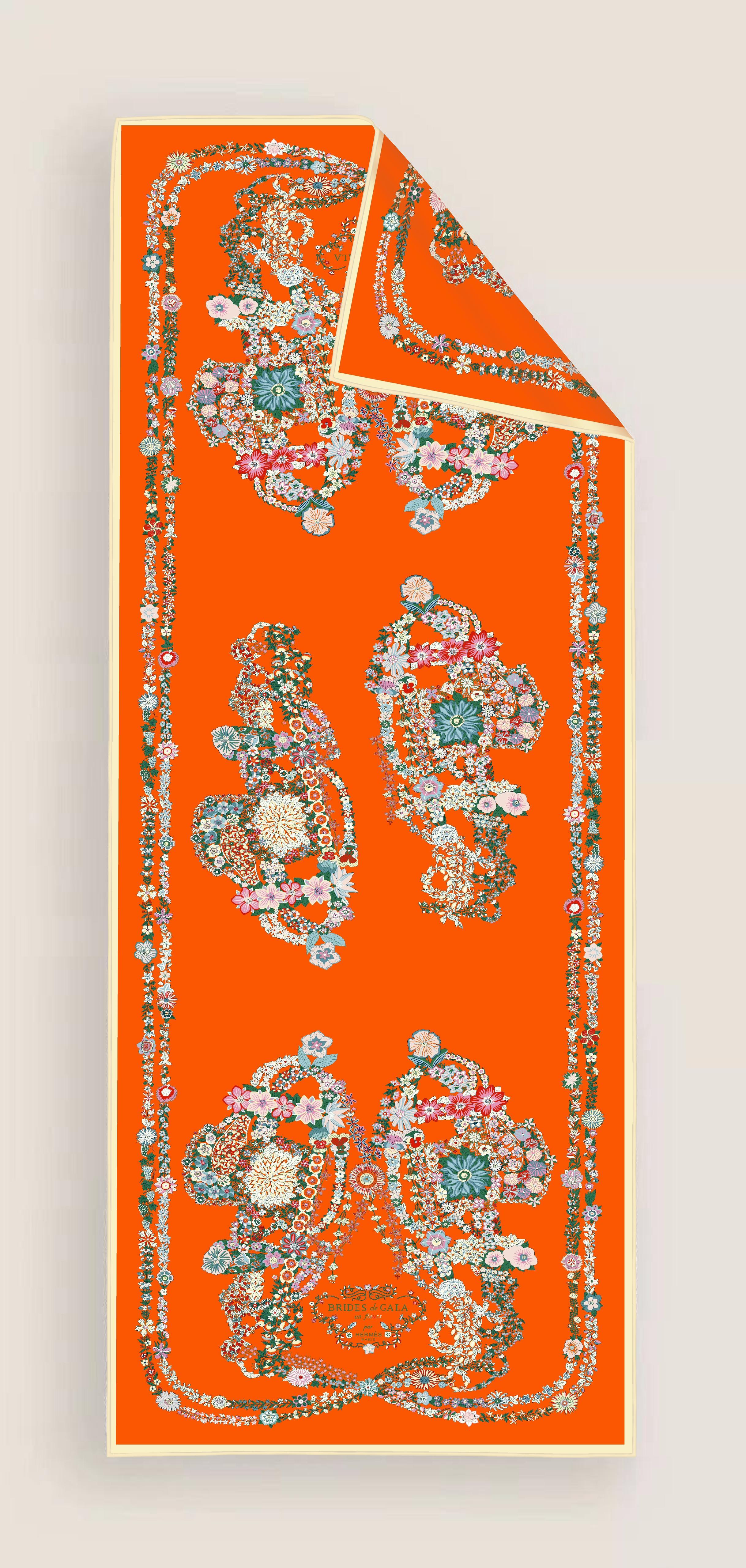 İthal Turuncu & Bej H Desen Vual İpek Şal (LMS423)