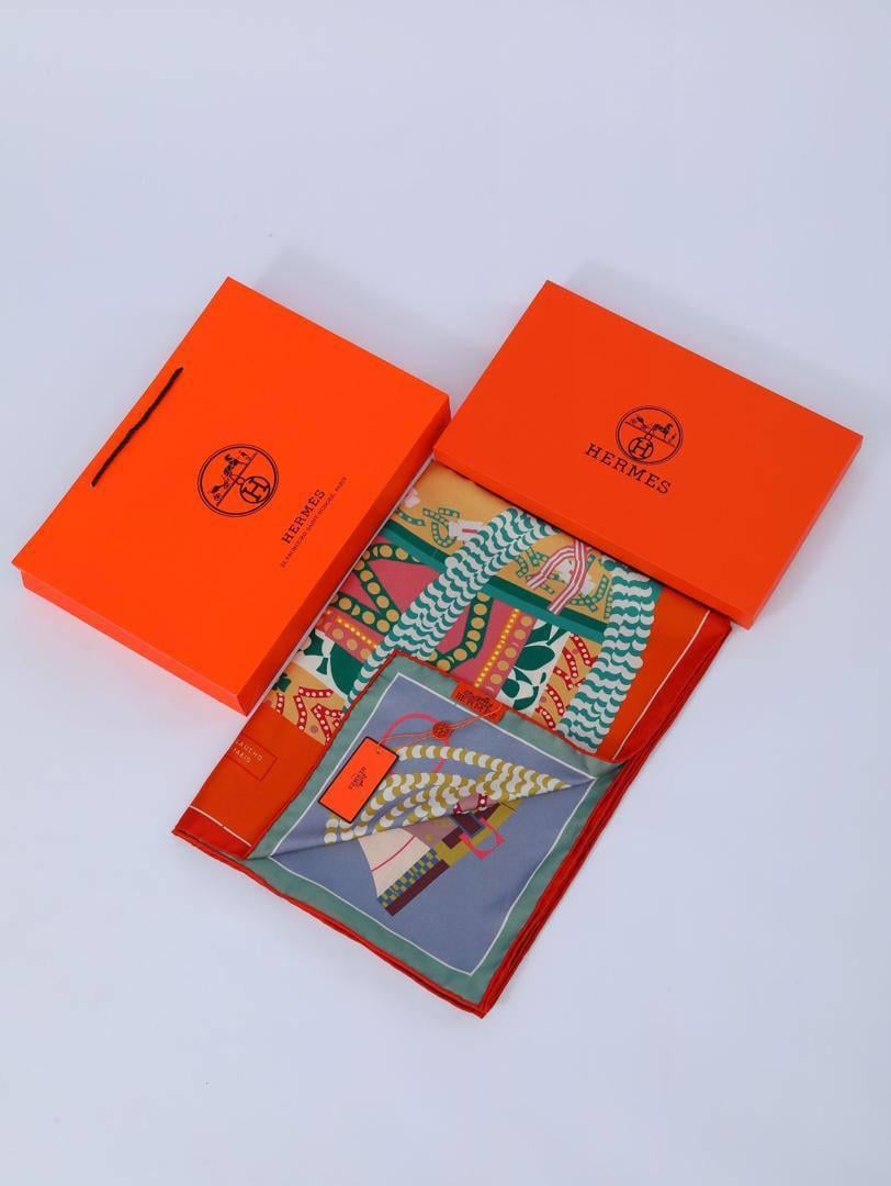 İthal Turuncu & Buz H 2 Desen Twill İpek Şal (LMS439)