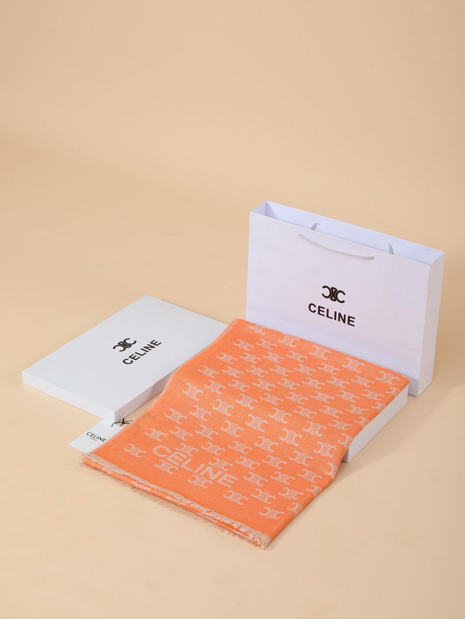 İthal Turuncu CE Desen Yün İpek Şal (LMS222)