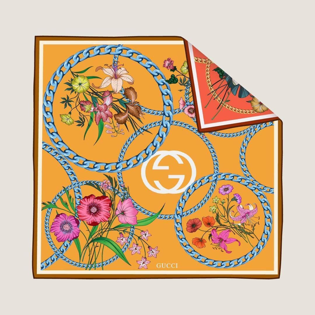 İthal Turuncu G Zincir Desen Twill İpek Eşarp (LMS566)