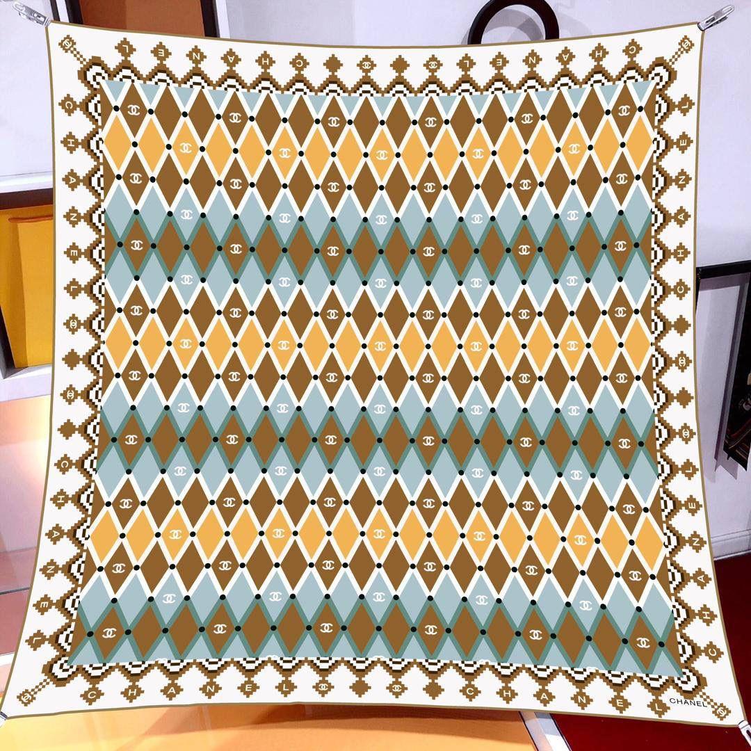 İthal Turuncu & Mocha CH Desen Twill İpek Eşarp (LMS586)