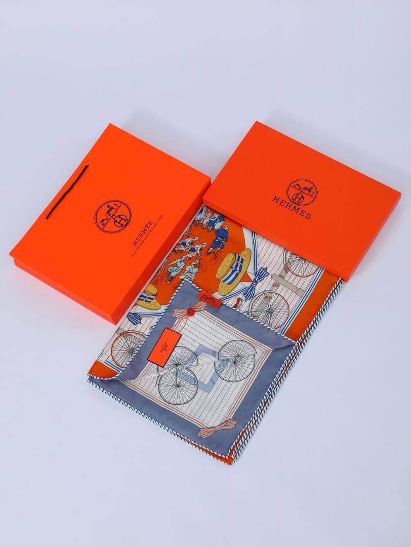 İthal Turuncu & Soft Mavi H Desen Twill İpek Şal (LMS333)