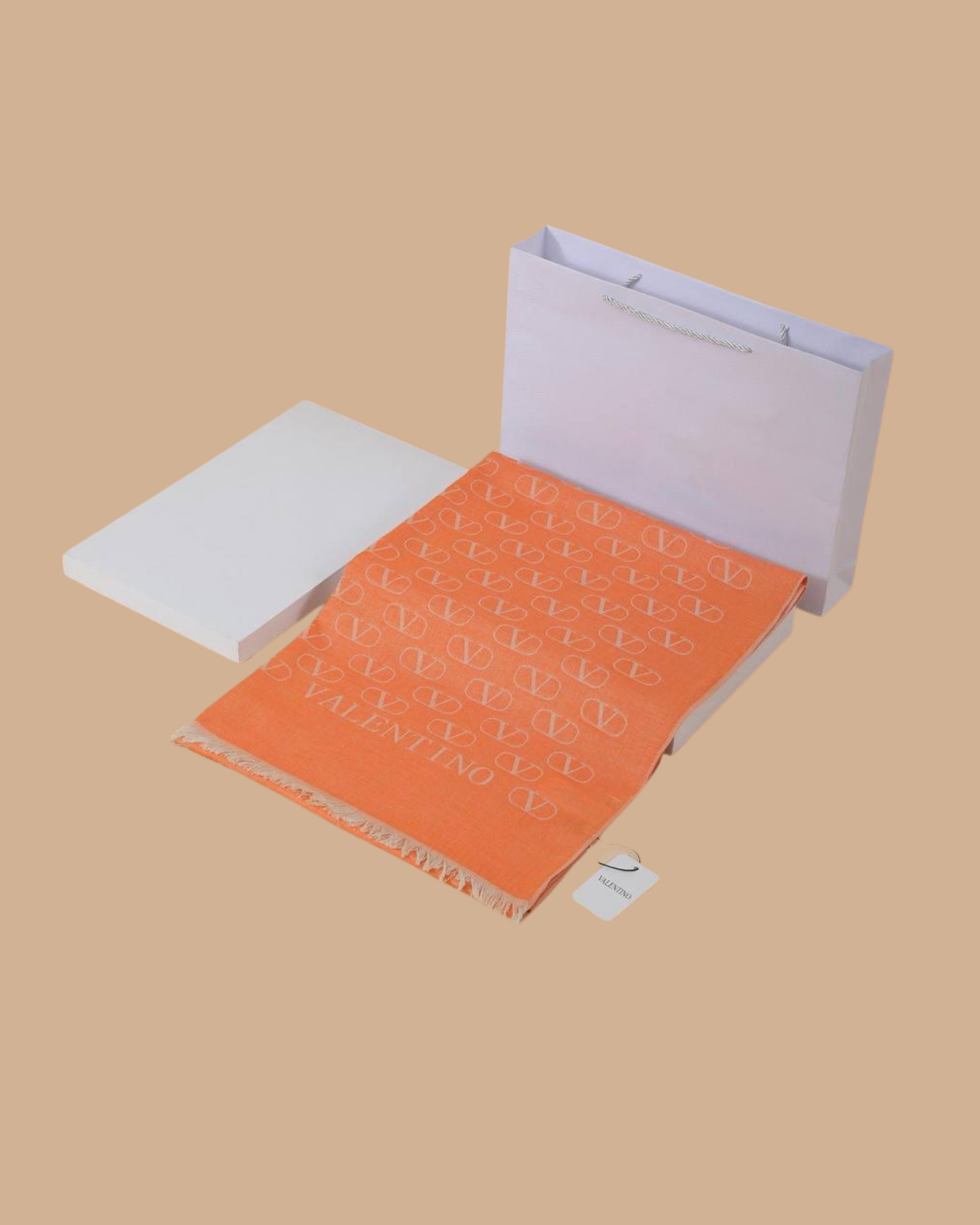 İthal Turuncu V Desen Yün İpek Şal (LMS120)