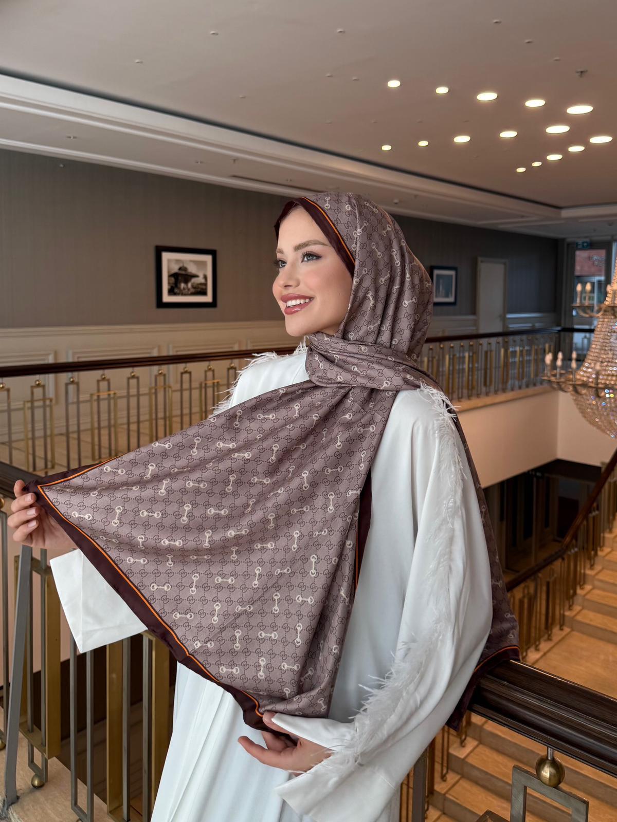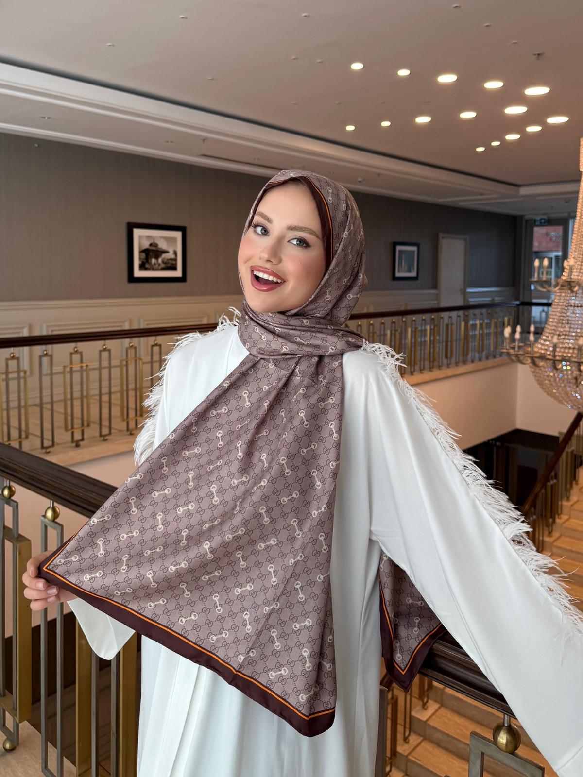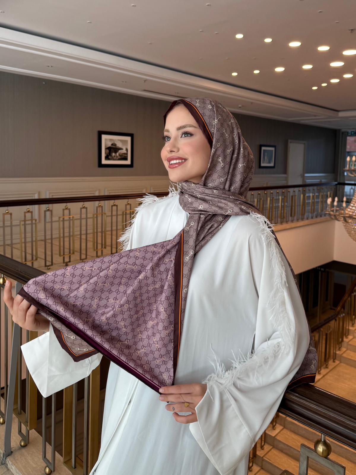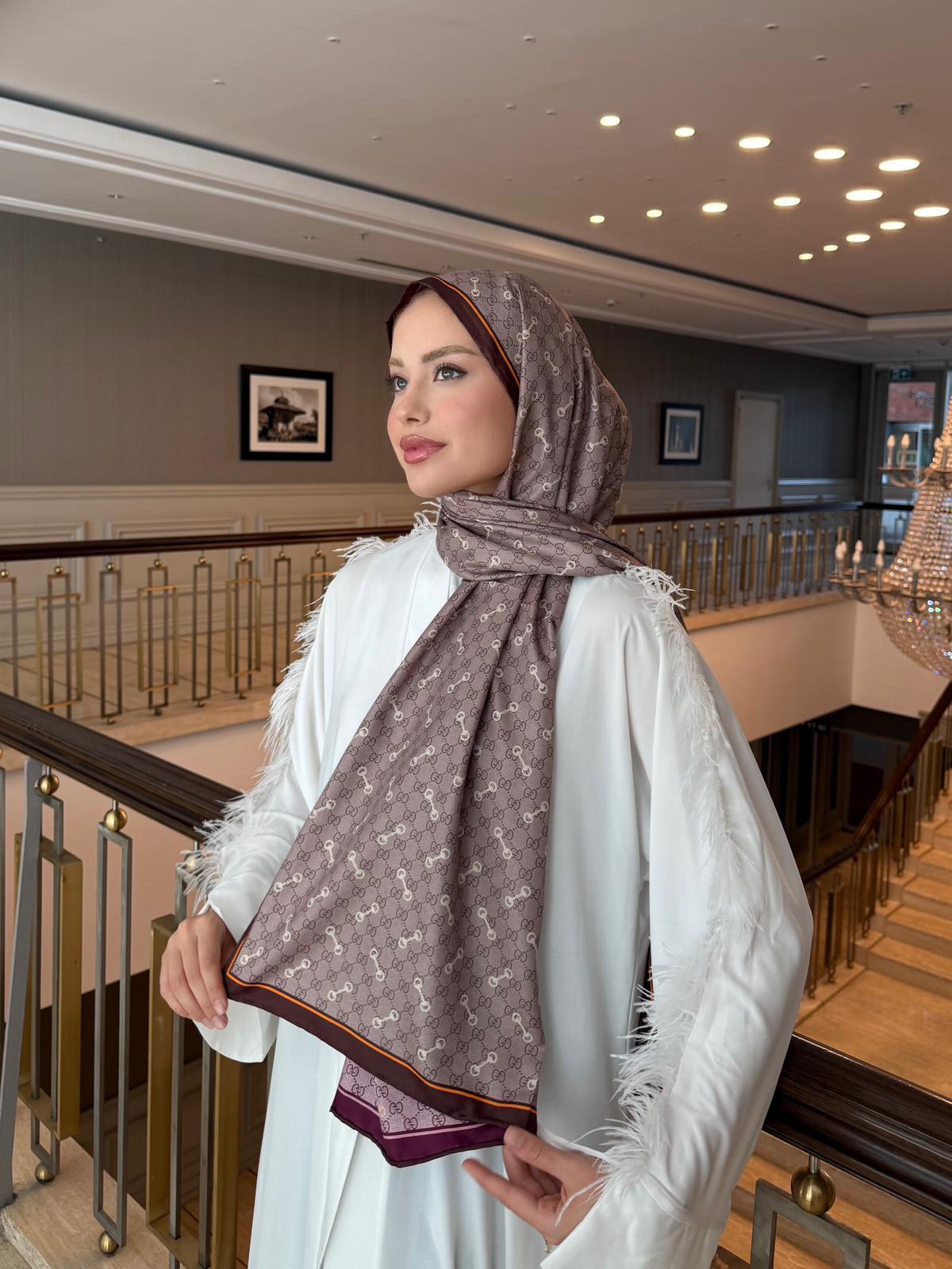 İthal Vizon & Gül Kurusu Kilit G Desen Twill İpek Şal (LMS279)