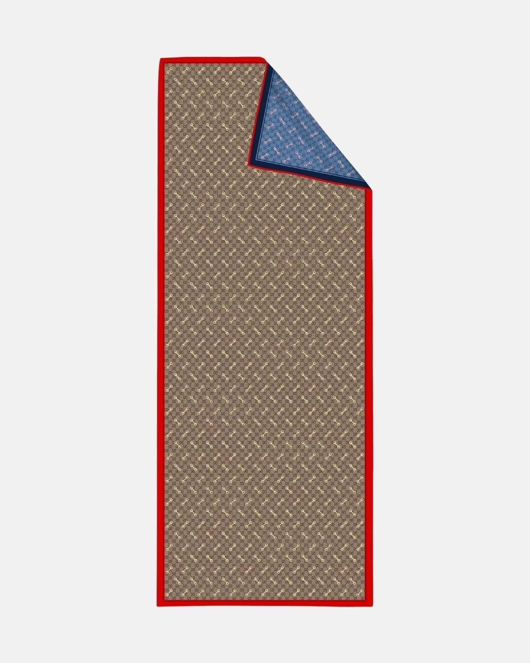 İthal Vizon & İndigo Kilit G Desen Twill İpek Şal (LMS280)