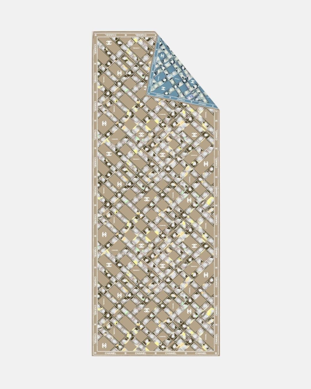 İthal Vizon & Mavi CH Desen Twill İpek Şal (LMS295)