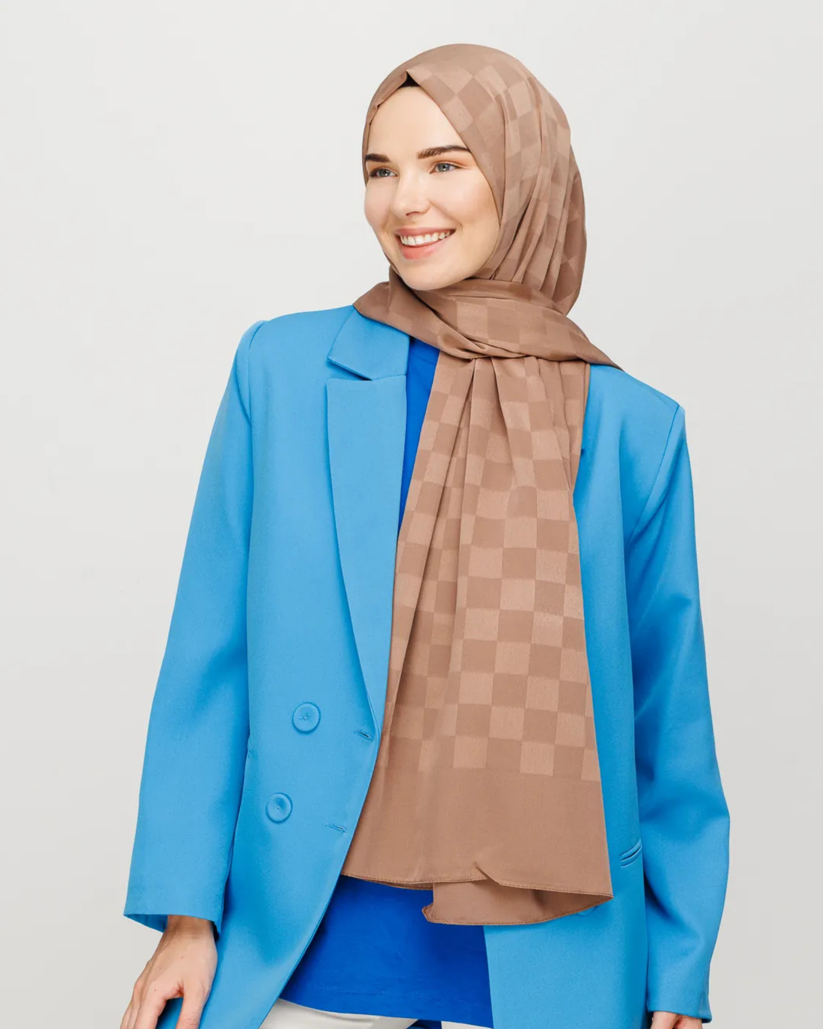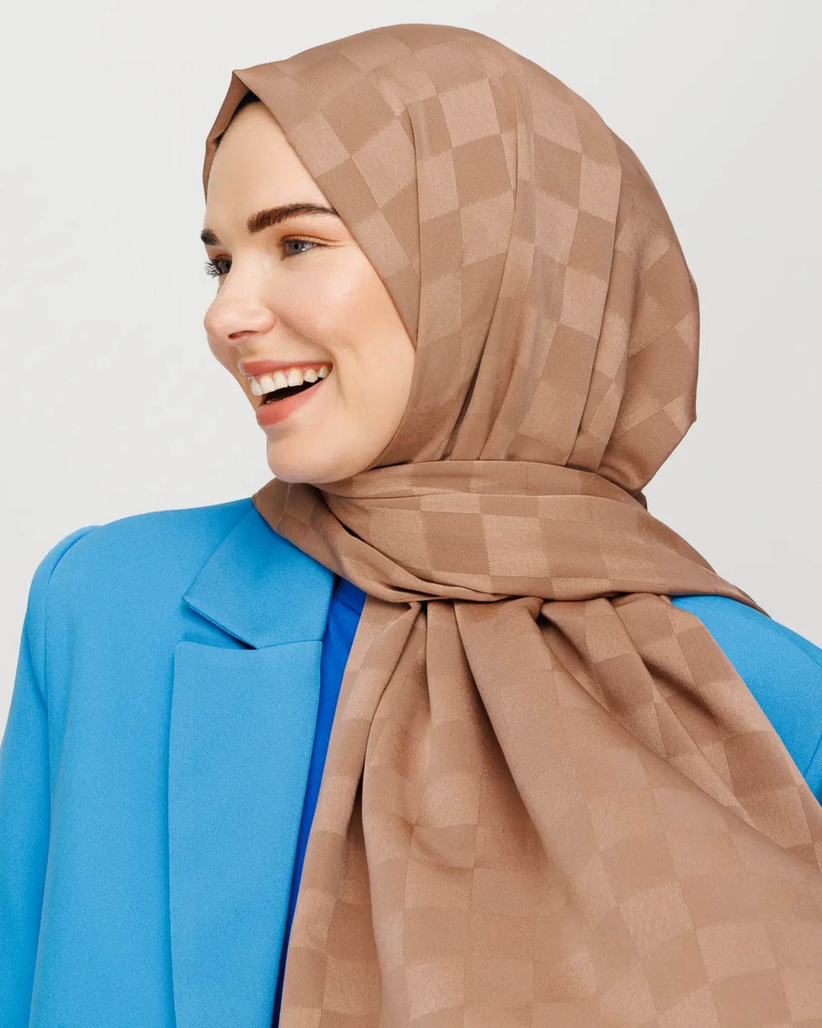 Kahverengi Dama Desen İpeksi Jakar Şal (JKRMNC0014)