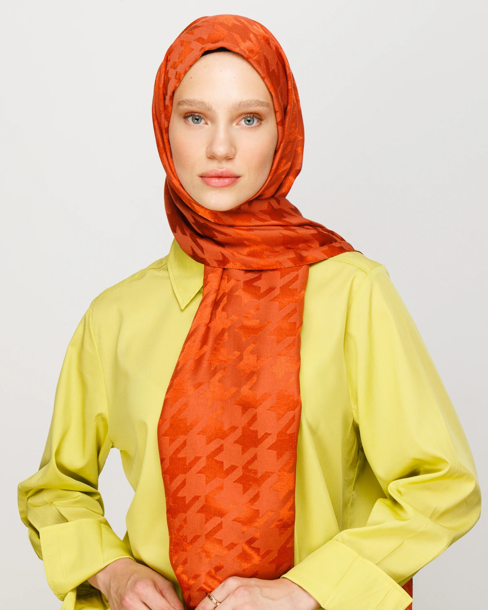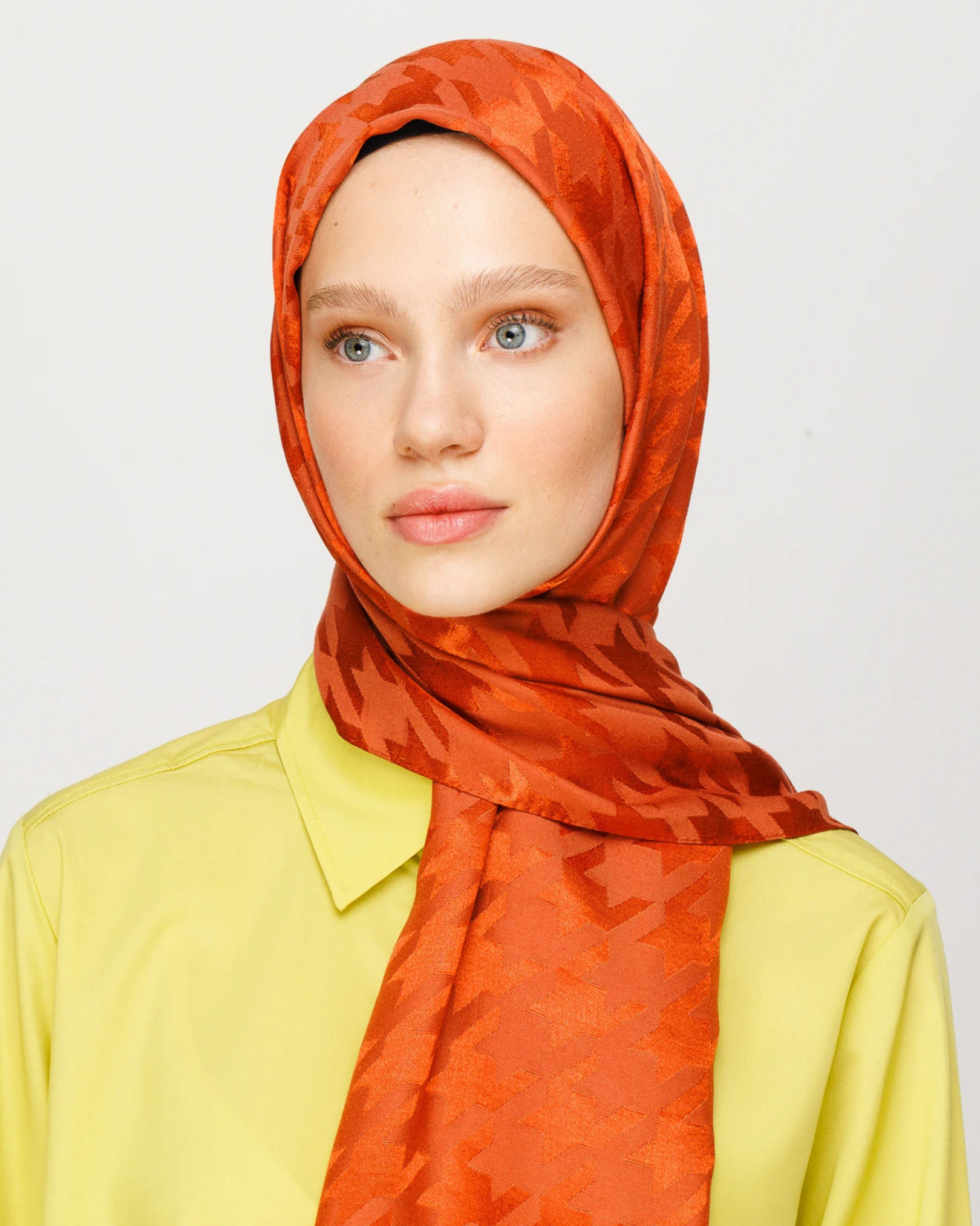 Kiremit Kazayağı Desen Parlak Jakar Şal (JKRMNC0017)