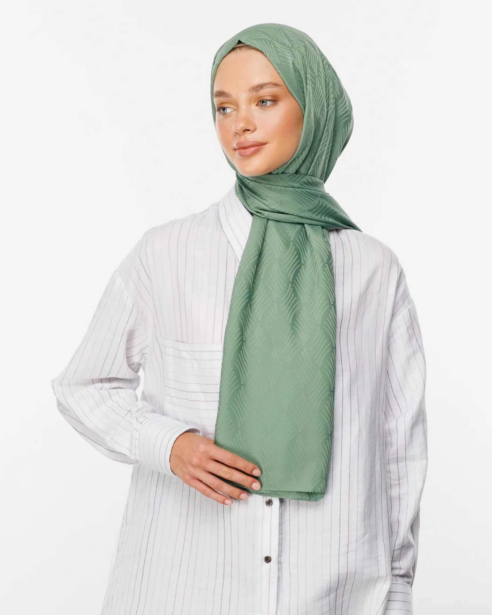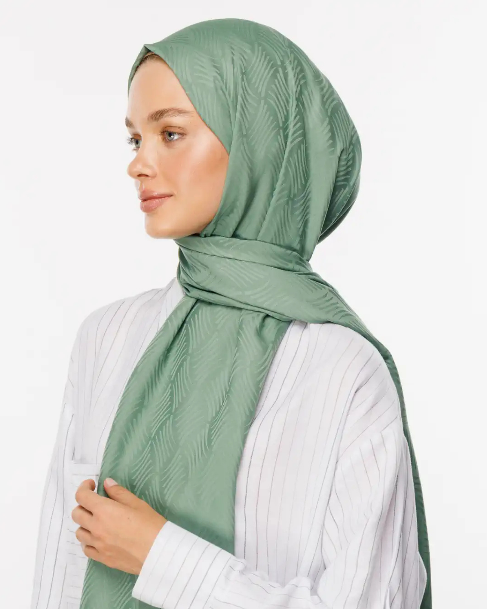 Küf Yeşili Aura Desen İpeksi Jakar Şal (JKRMNC0023)