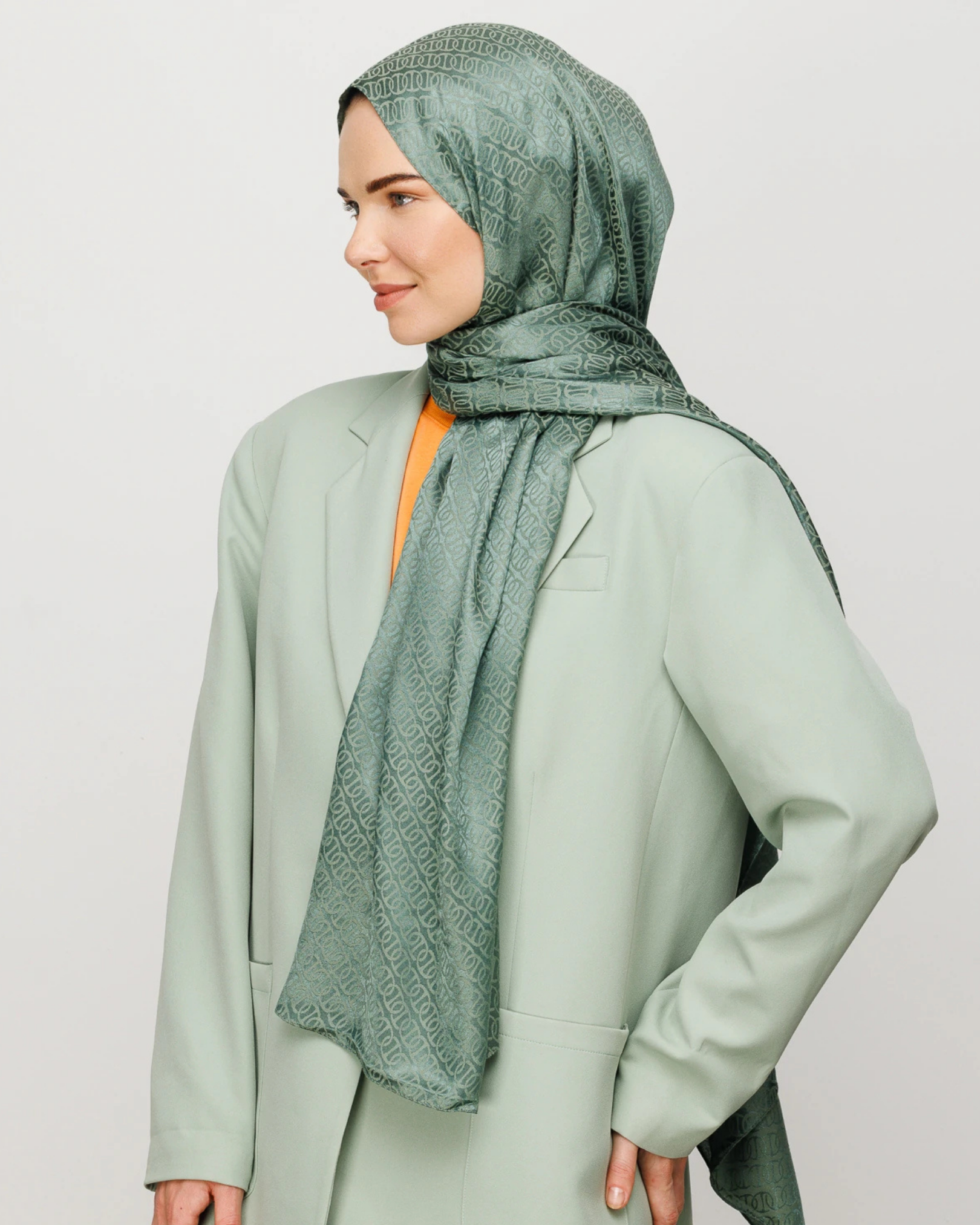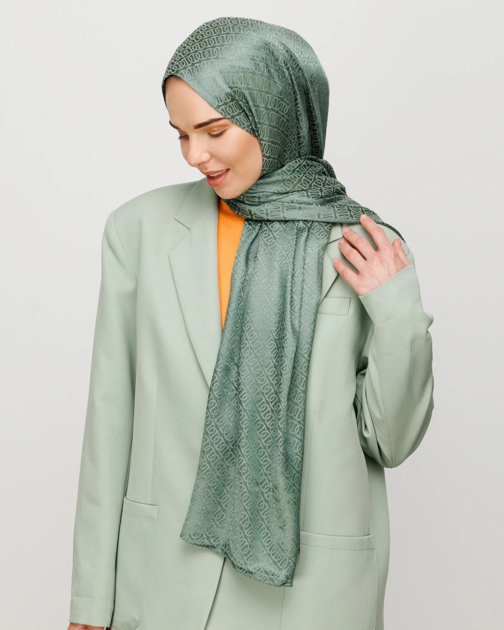 Küf Yeşili Forever Desen Parlak Jakar Şal (JKRMNC0018)