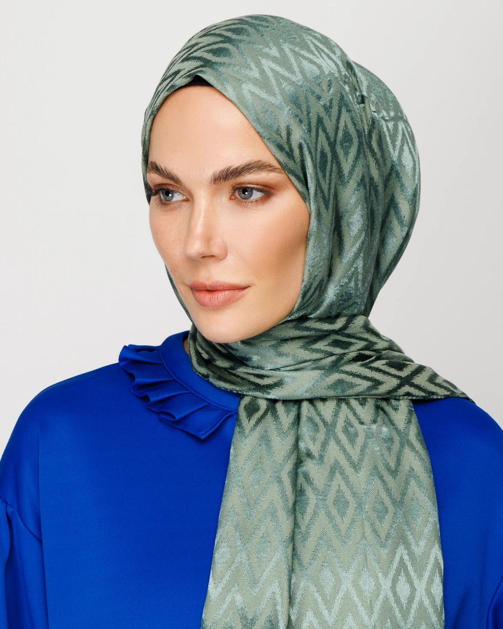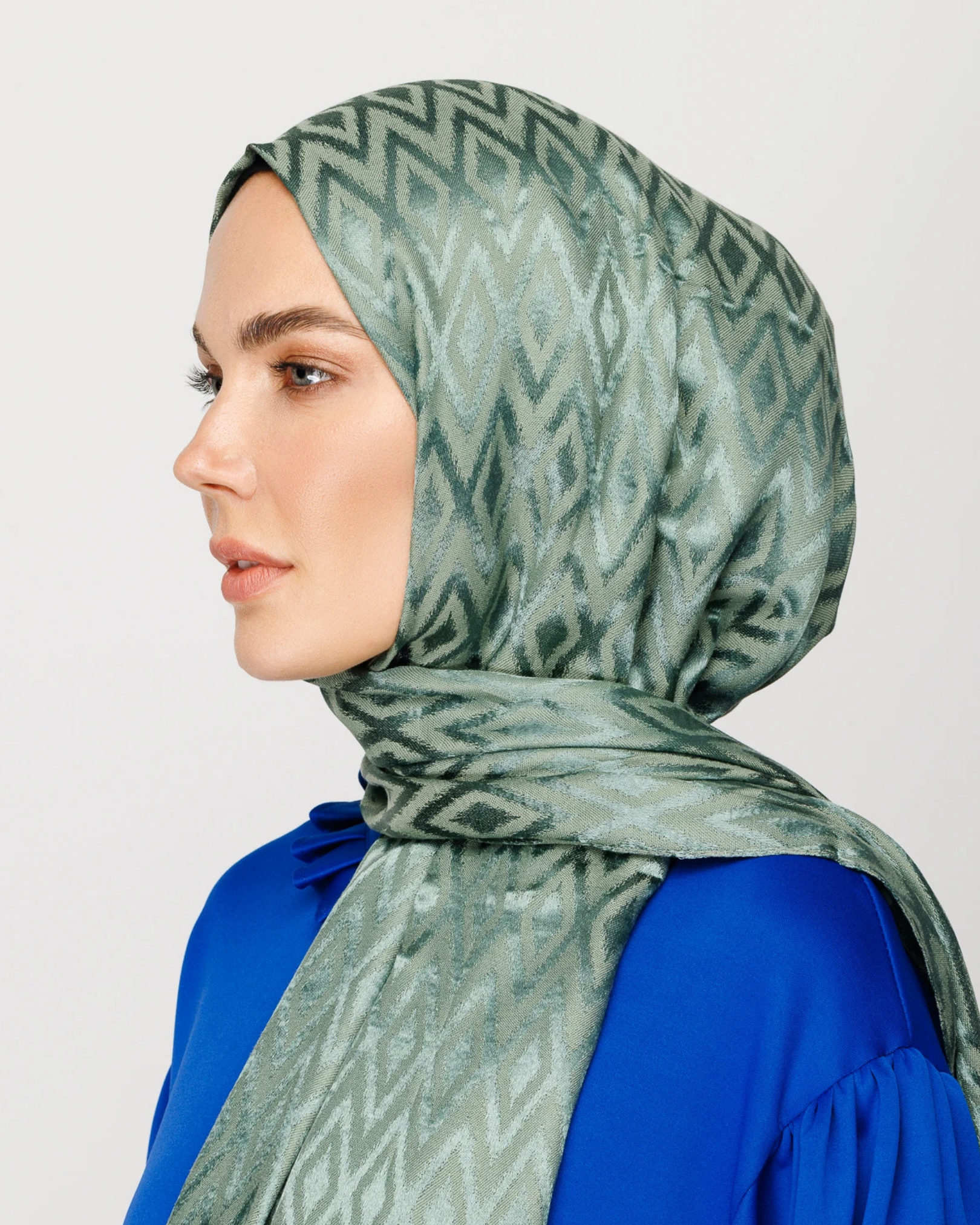 Küf Yeşili Karo Desen Parlak Jakar Şal (JKRMNC0015)