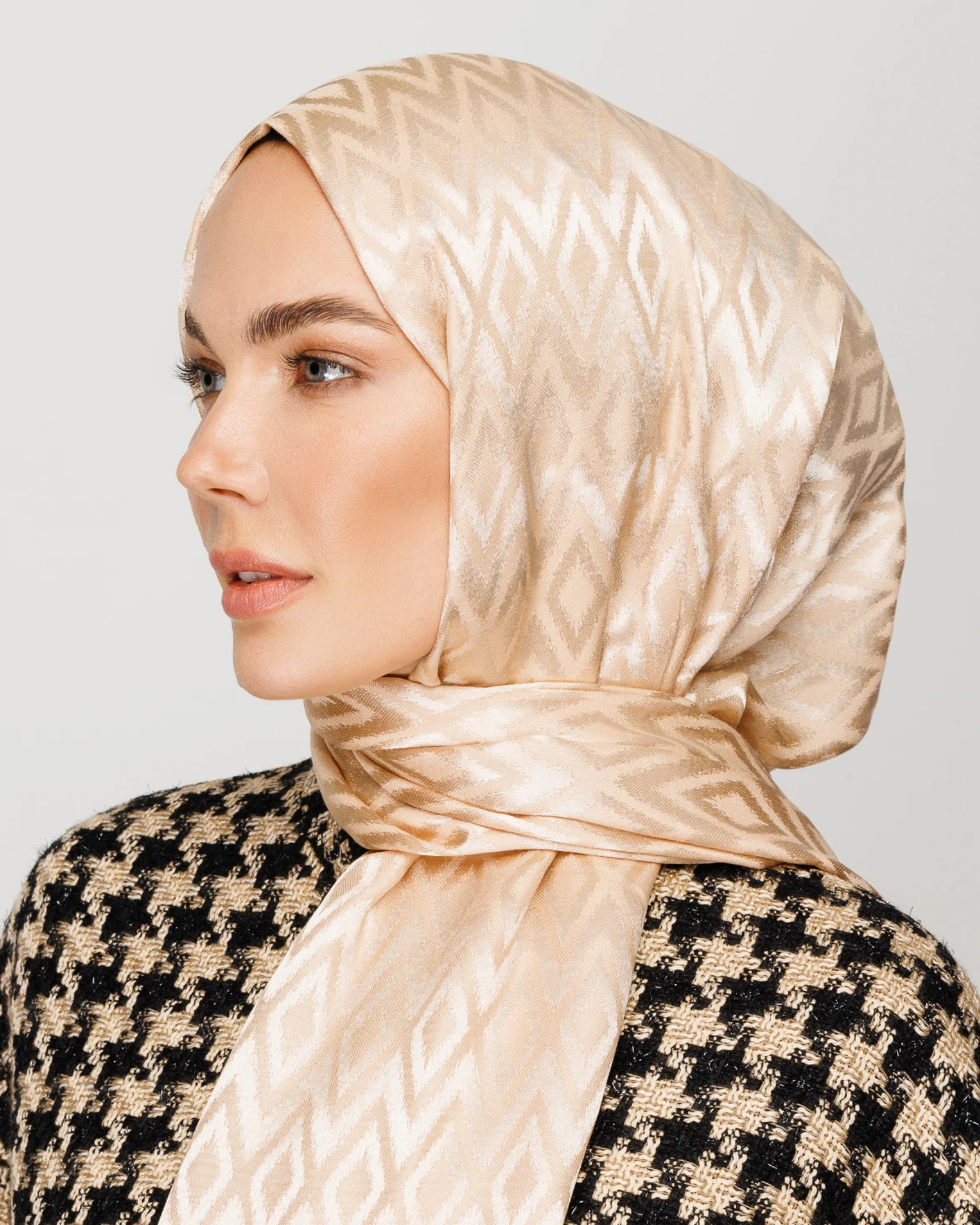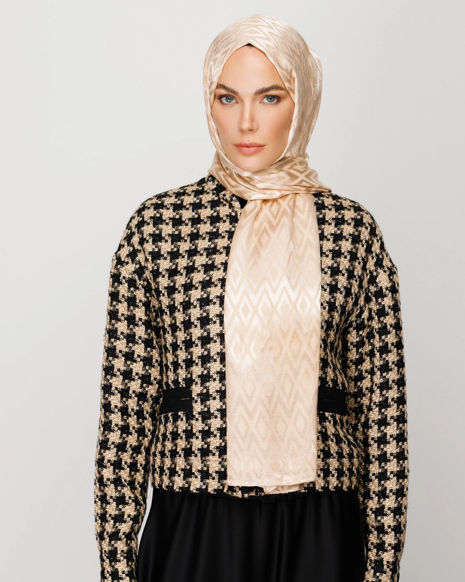 Kum Beji Karo Desen Parlak Jakar Şal (JKRMNC0015)