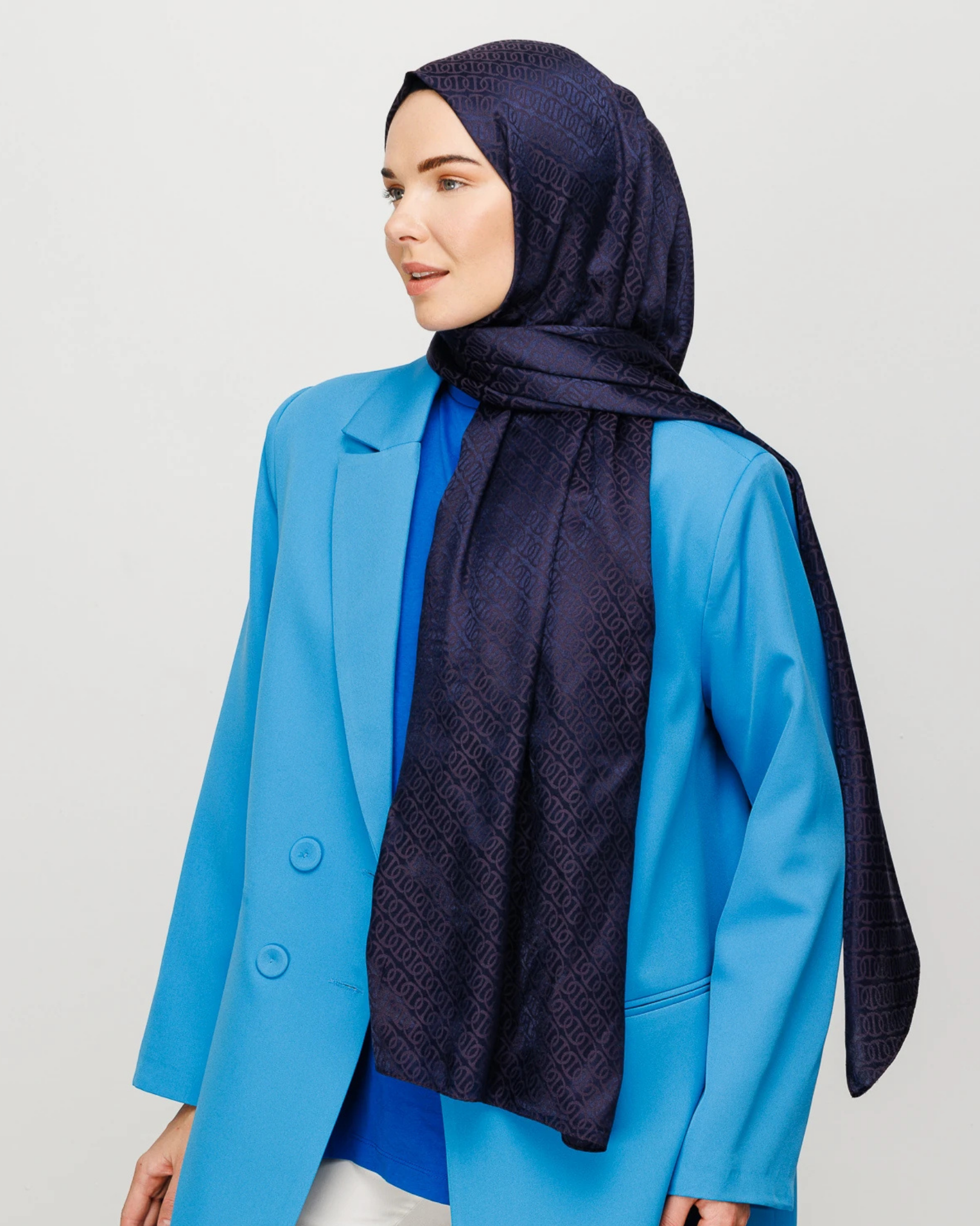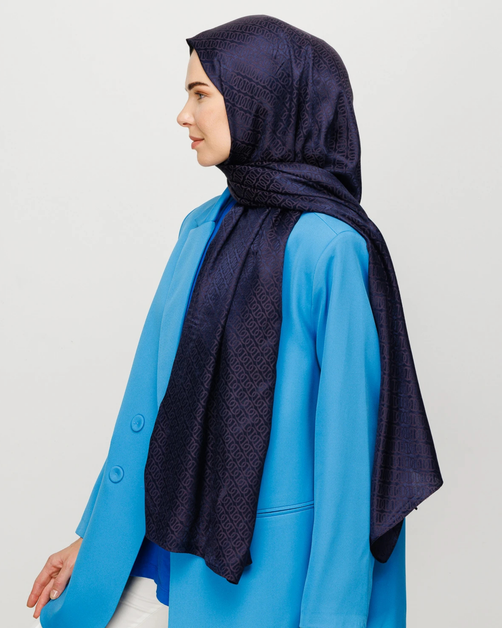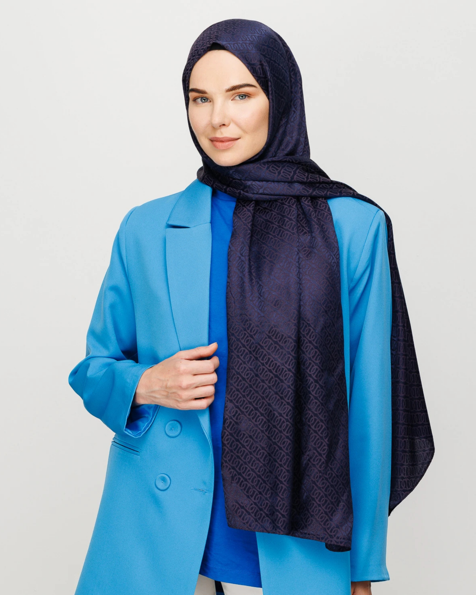 Lacivert Forever Desen Parlak Jakar Şal (JKRMNC0018)