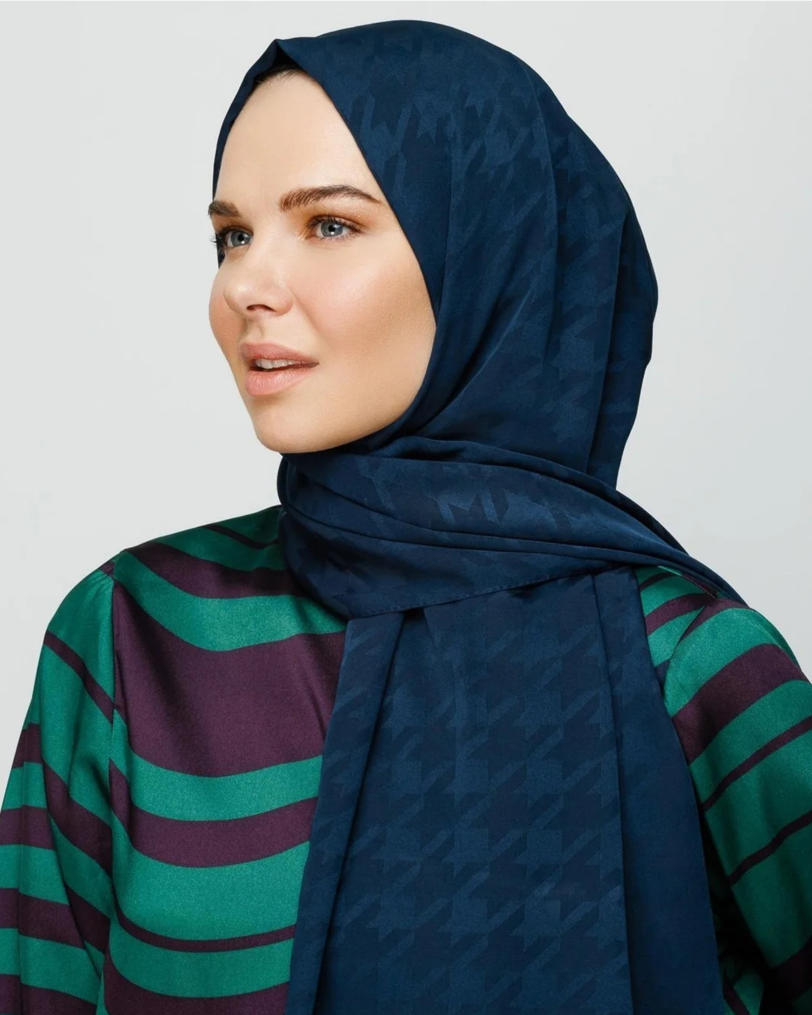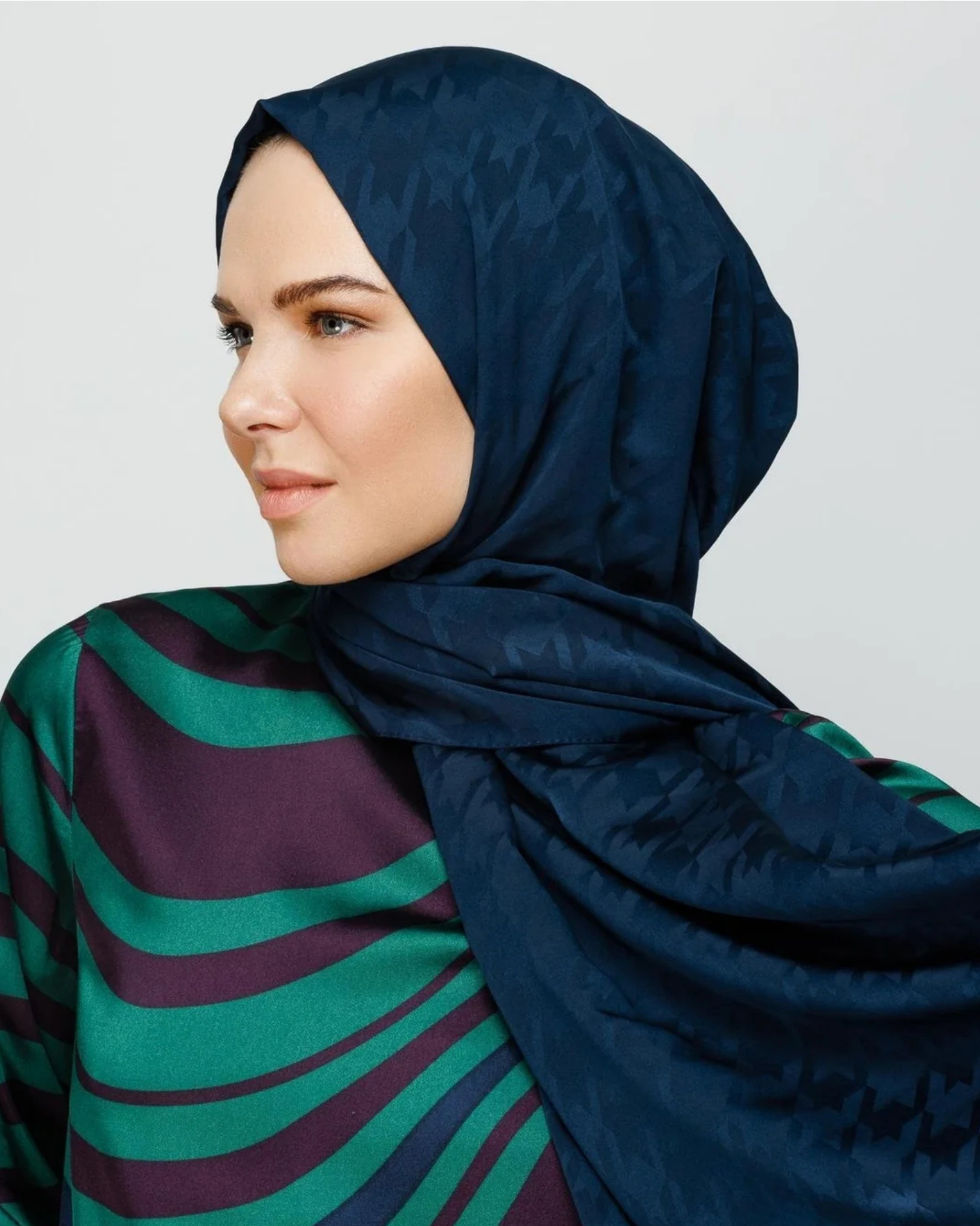 Lacivert Kazayağı Desen İpeksi Jakar Şal (JKRMNC0005)