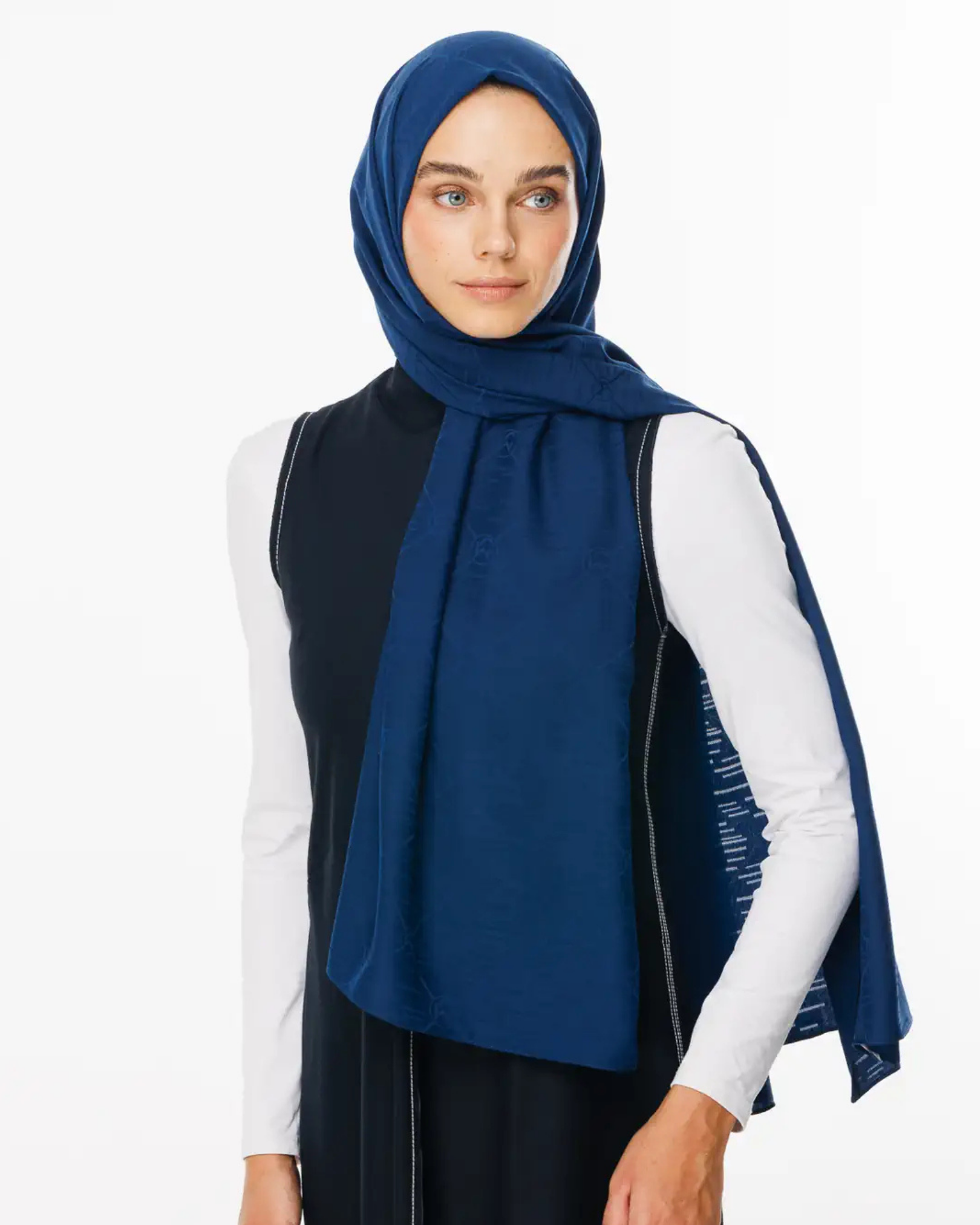 Lacivert Moon Is Desen Jakar Şal (JKRMNC0026)