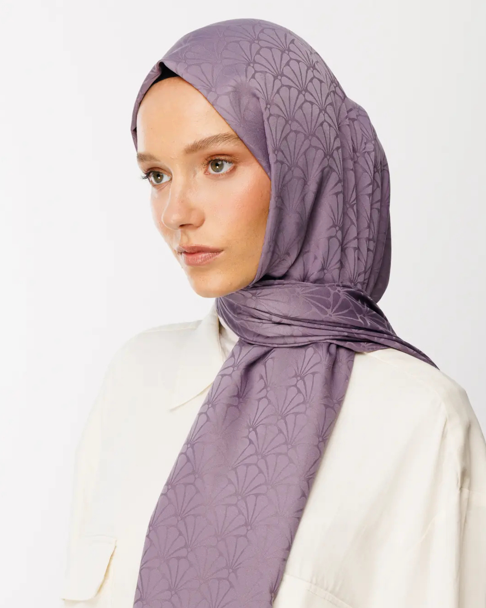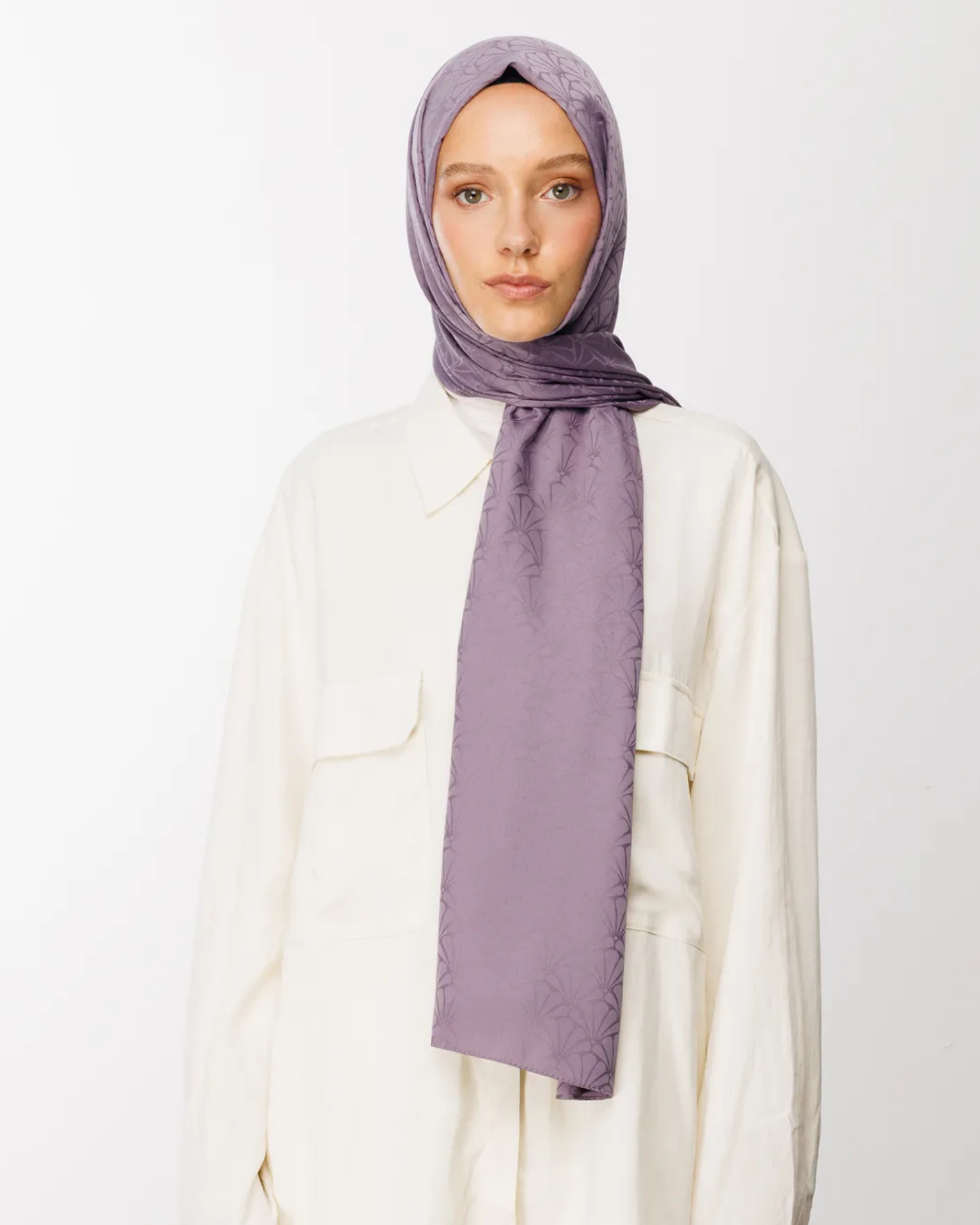 Lavanta Lotus Desen İpeksi Jakar Şal (JKRMNC0024)