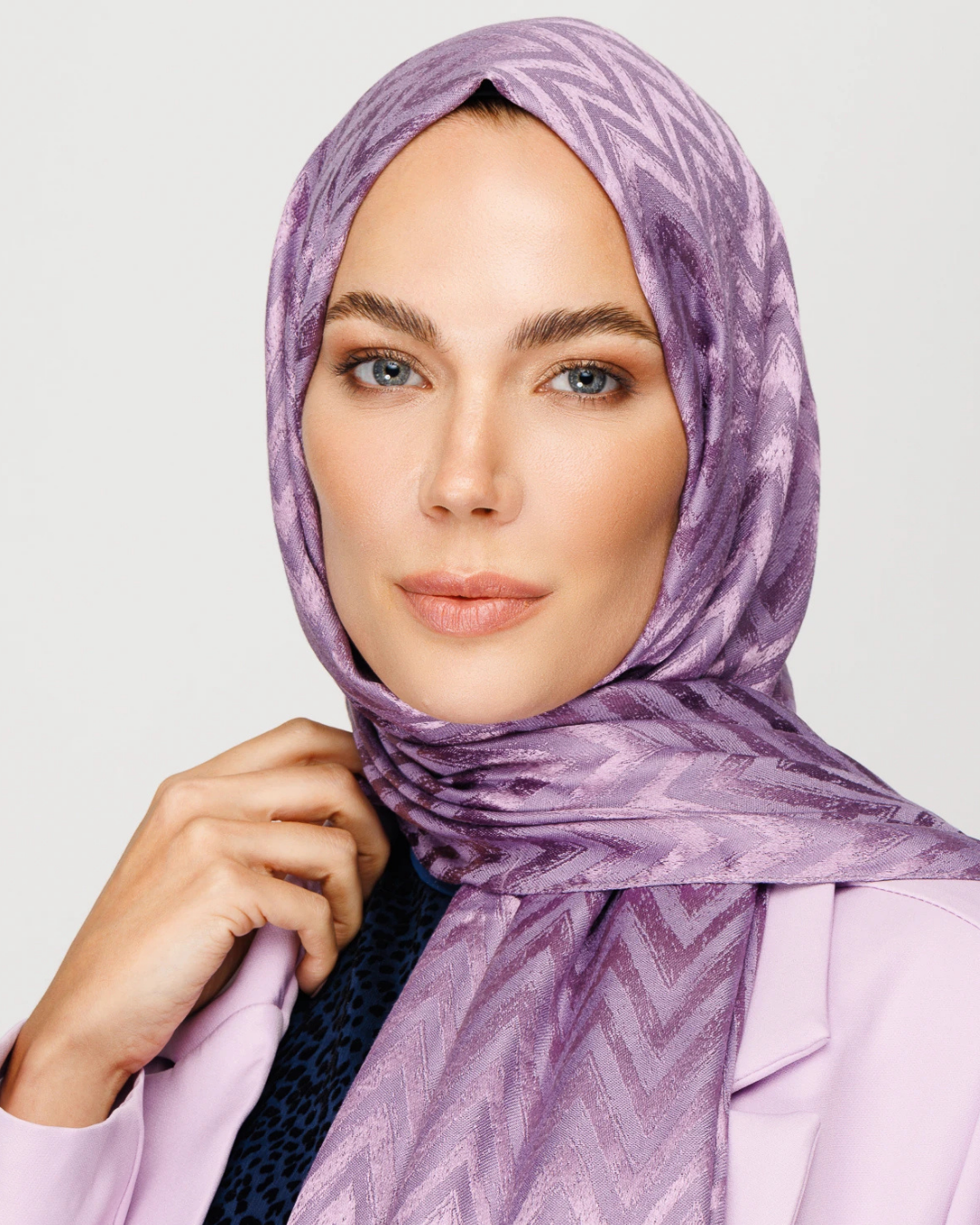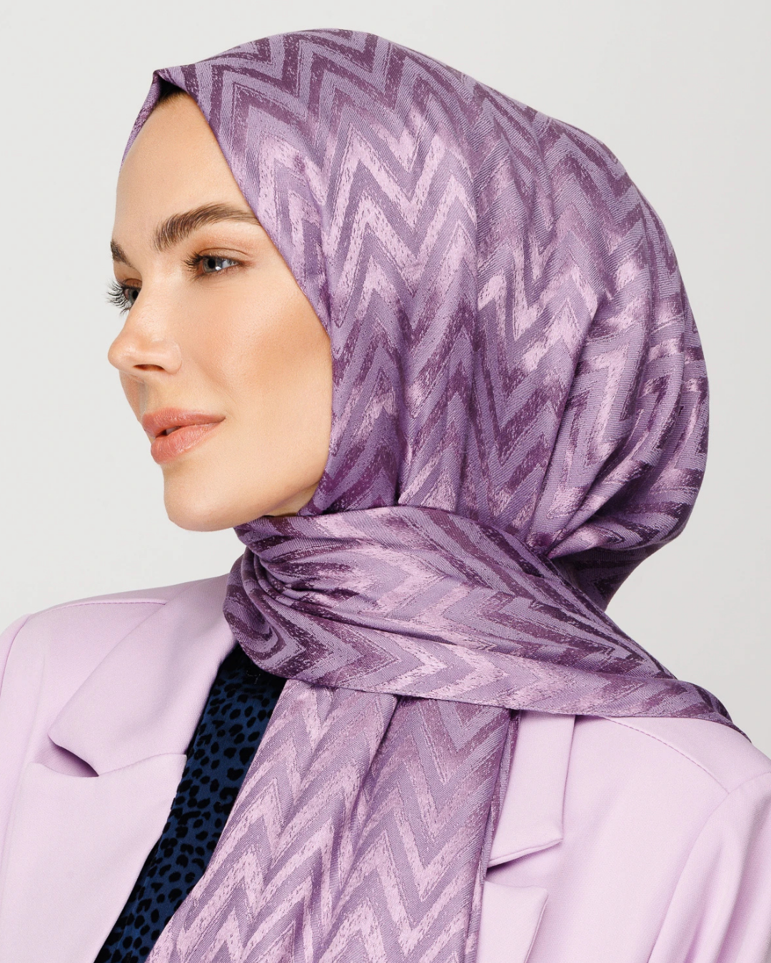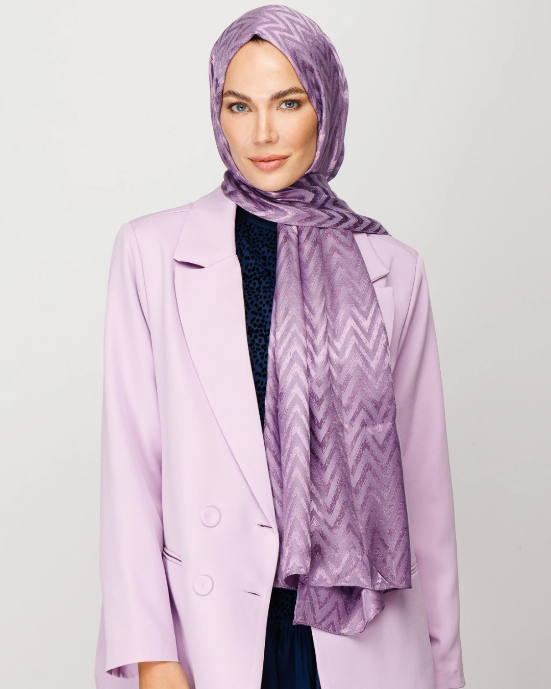 Lavanta Zikzak Desen Parlak Jakar Şal (JKRMNC0019)