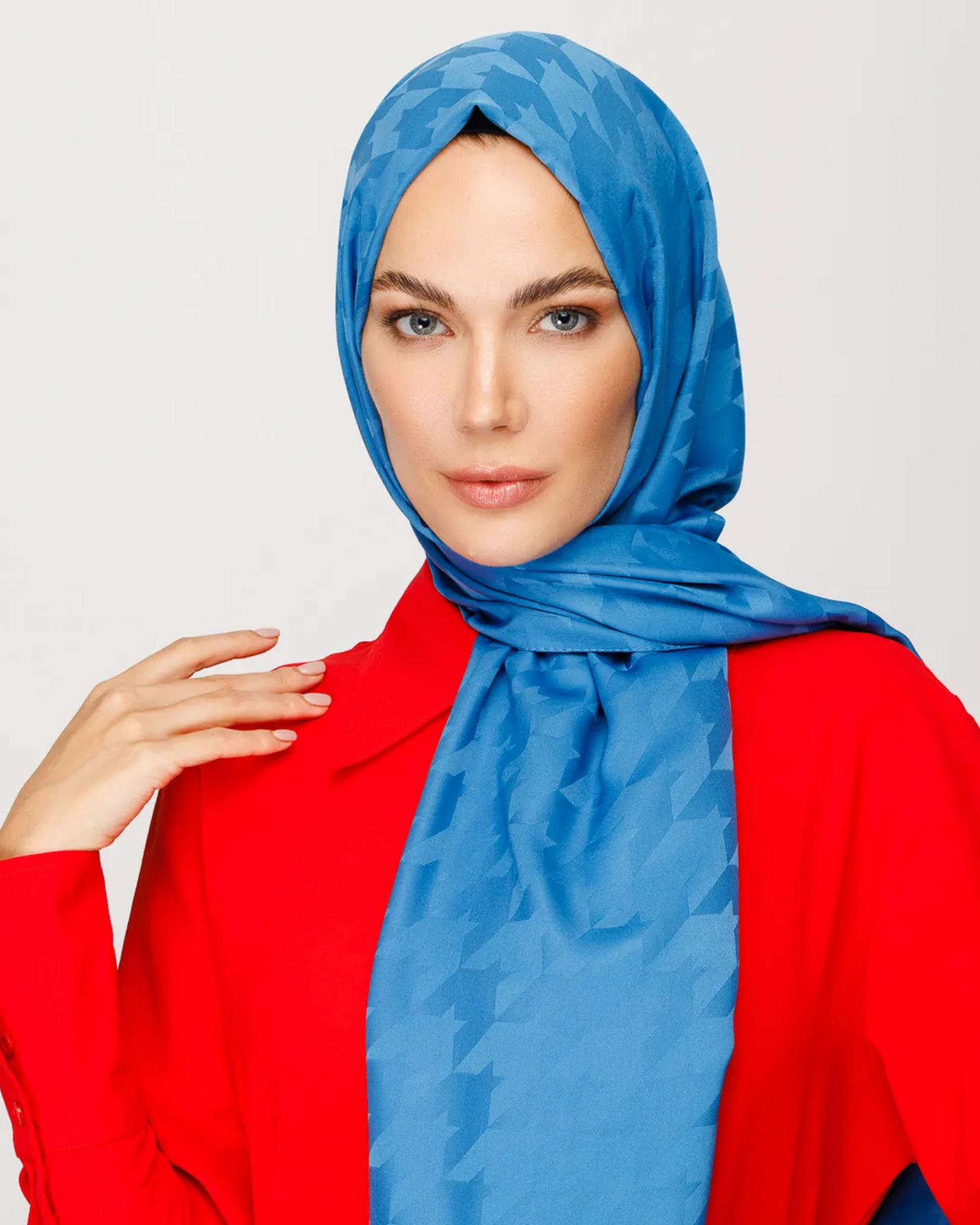 Mavi Kazayağı Desen İpeksi Jakar Şal (JKRMNC0005)