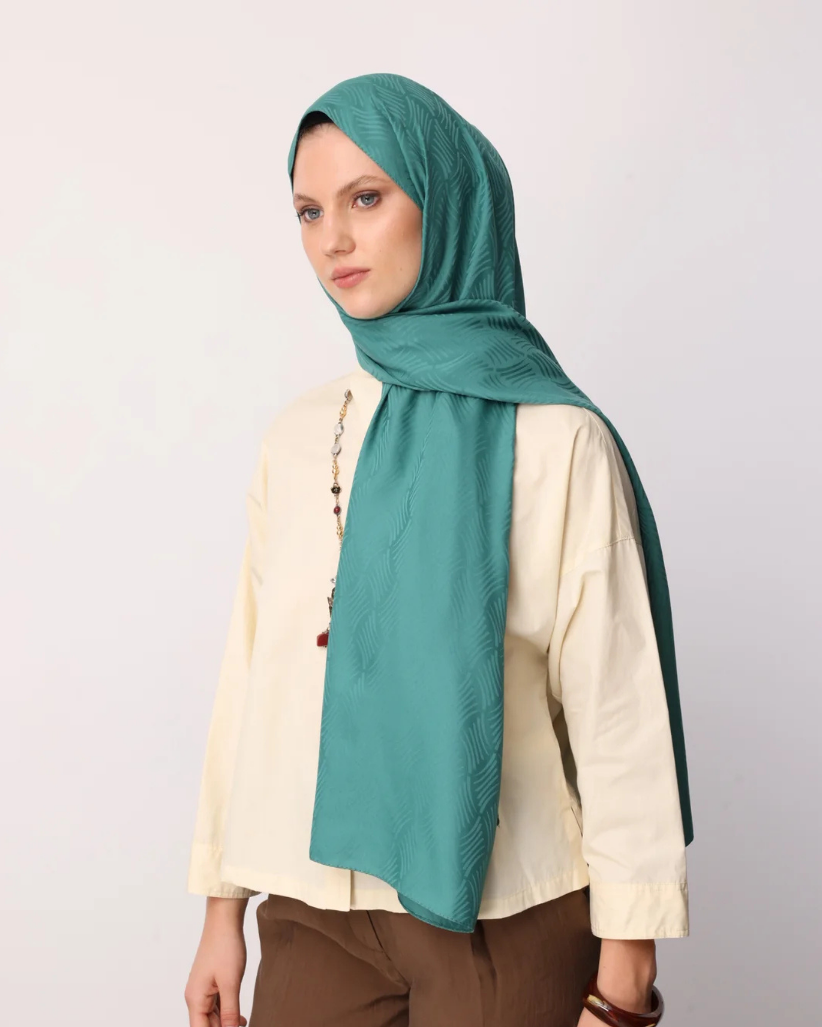 Mint Yeşili Aura Desen İpeksi Jakar Şal (JKRMNC0023)