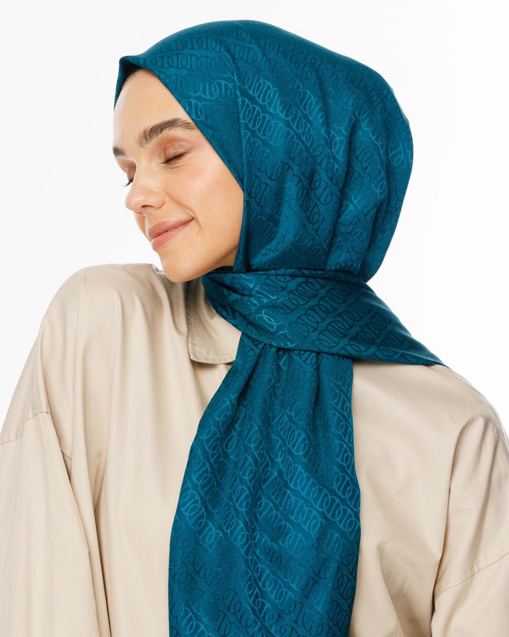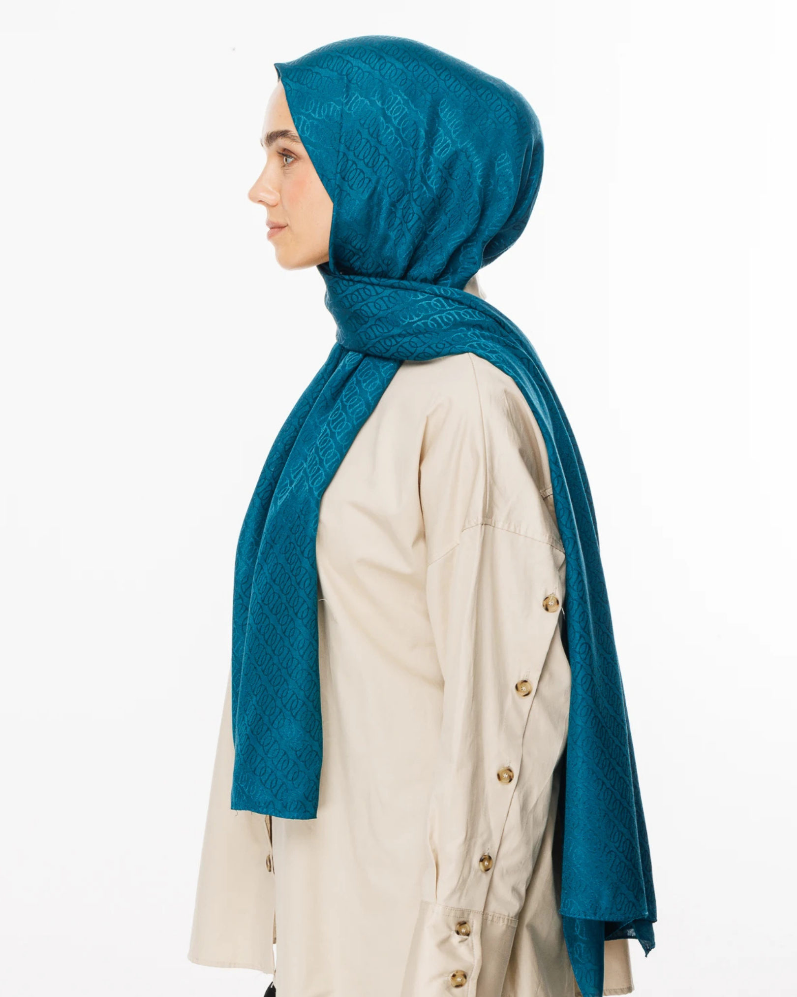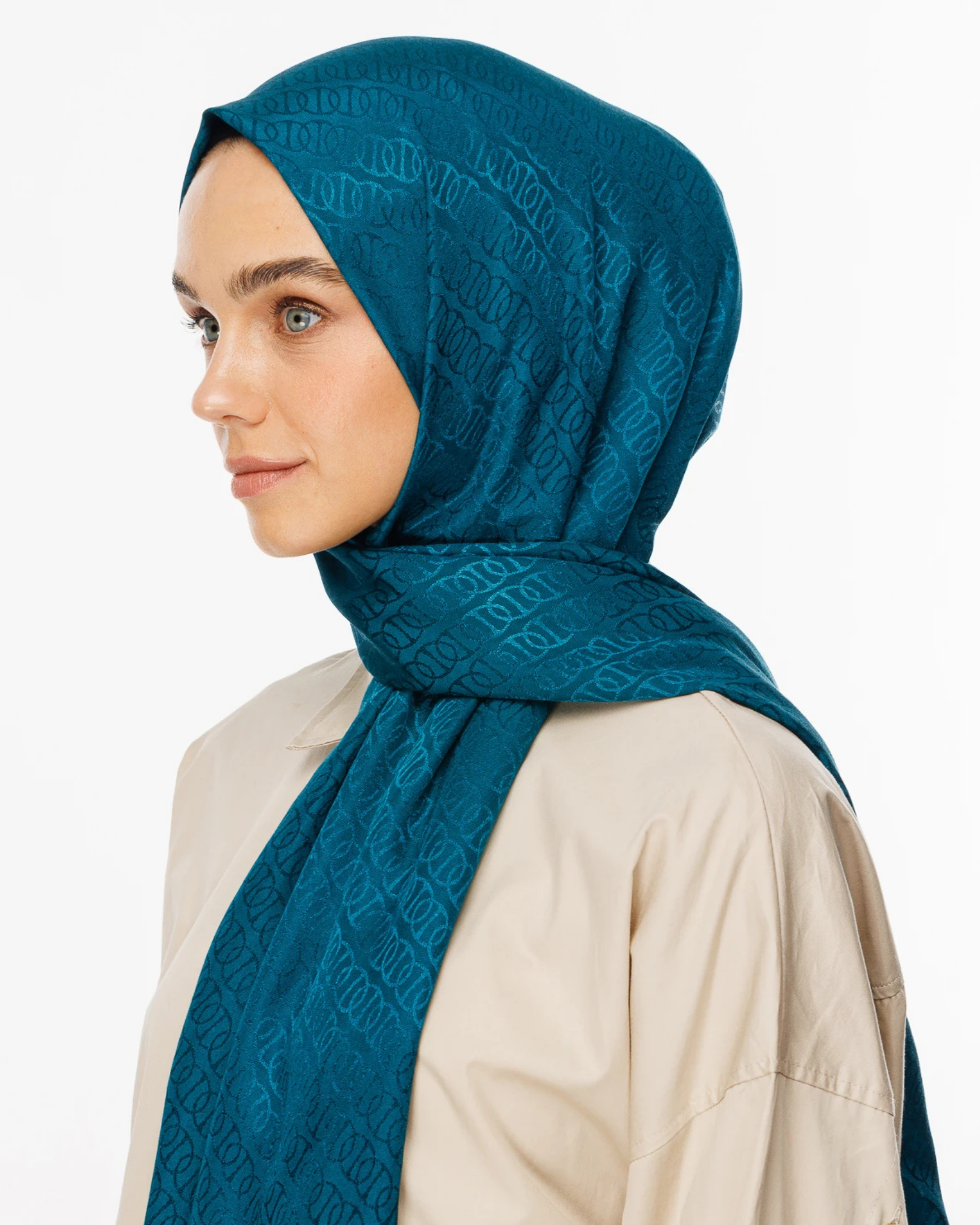 Petrol Mavisi Forever Desen Parlak Jakar Şal (JKRMNC0018)
