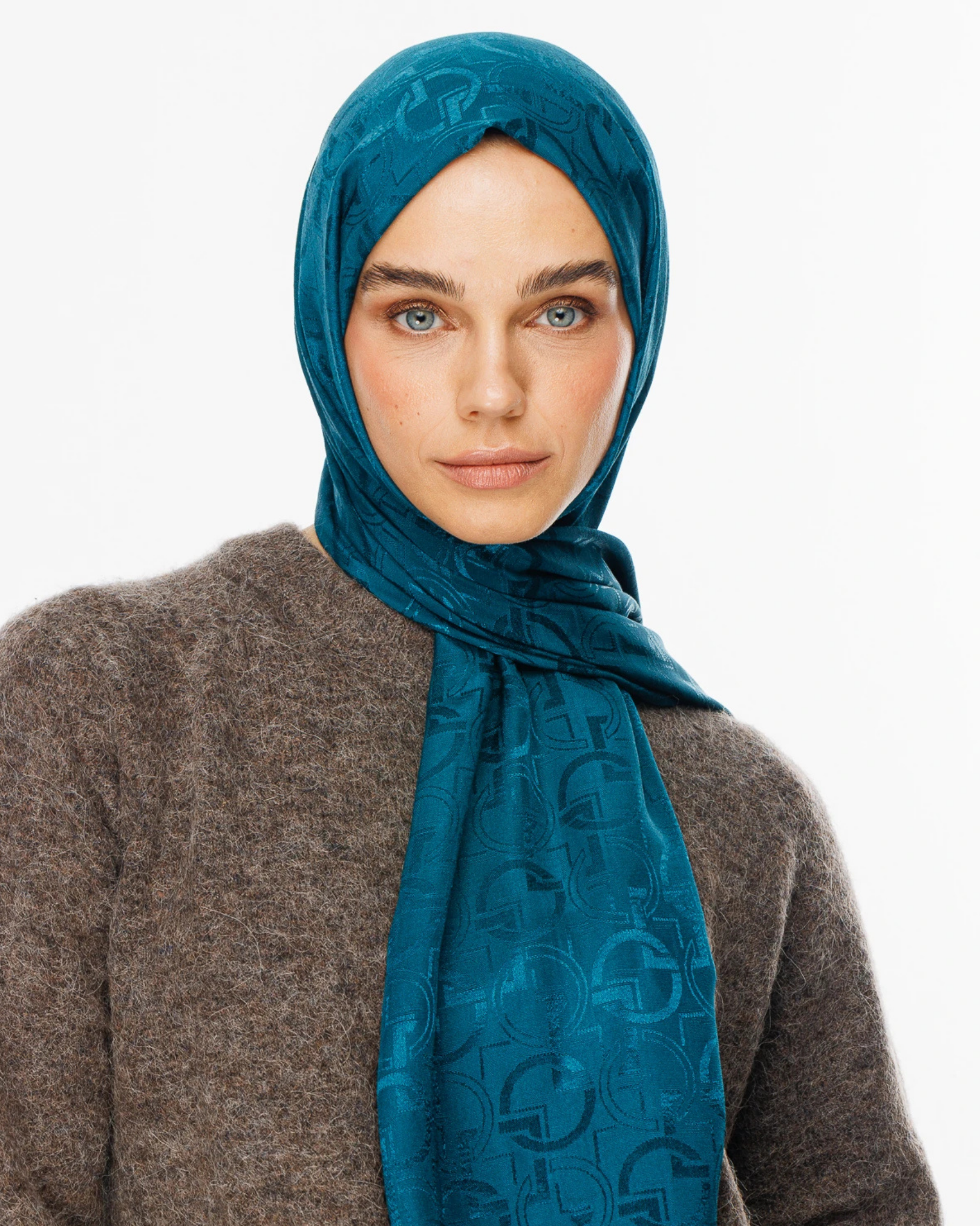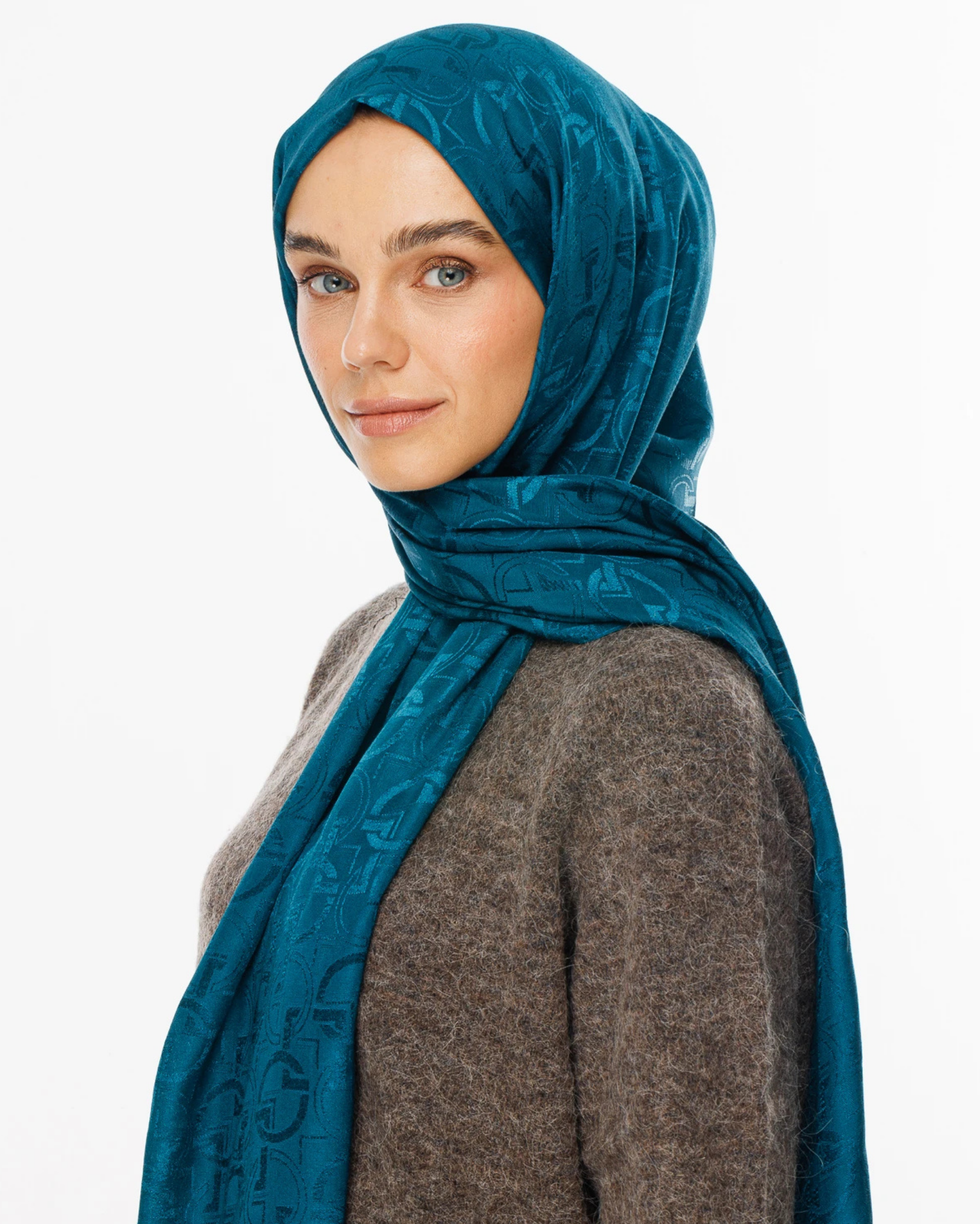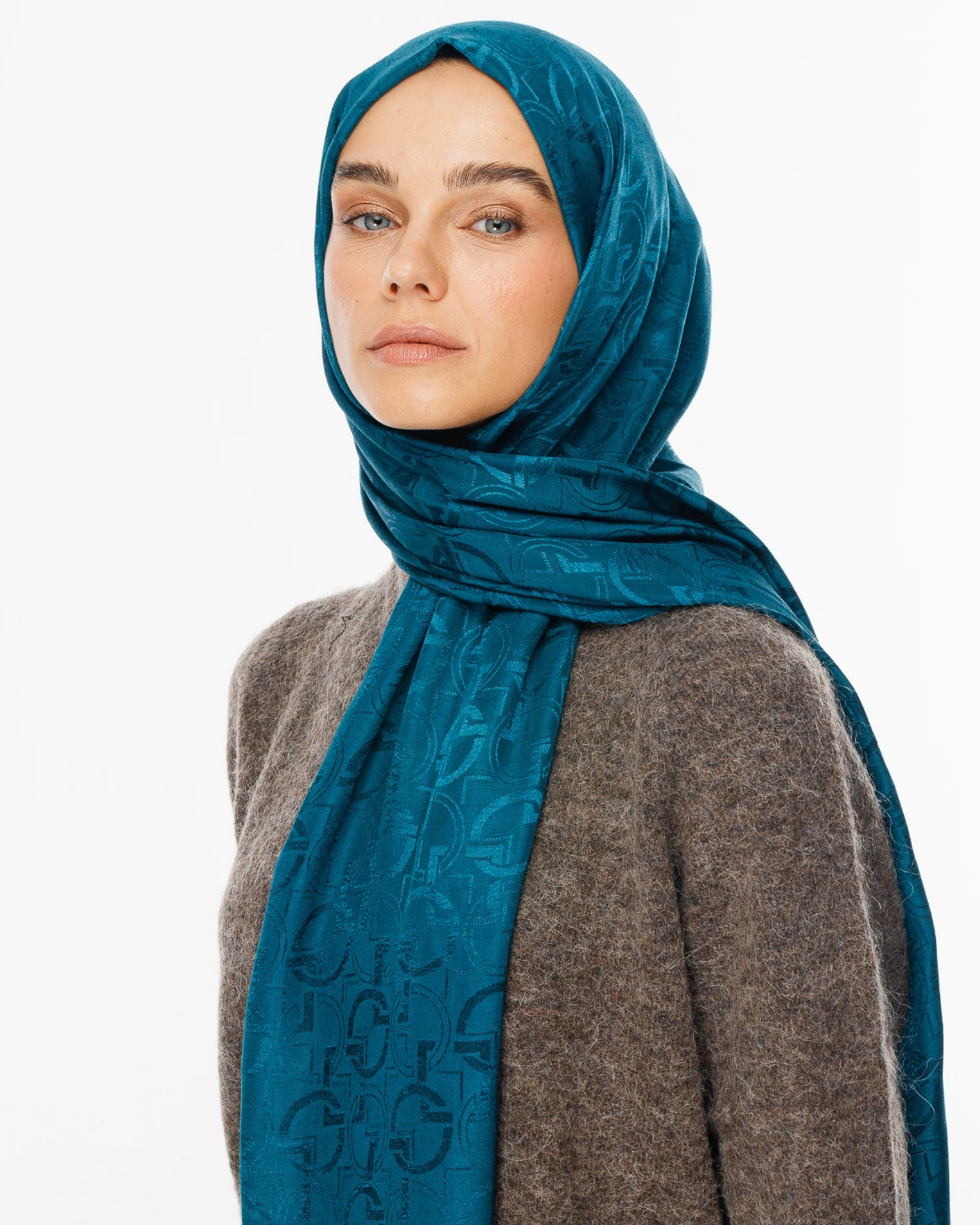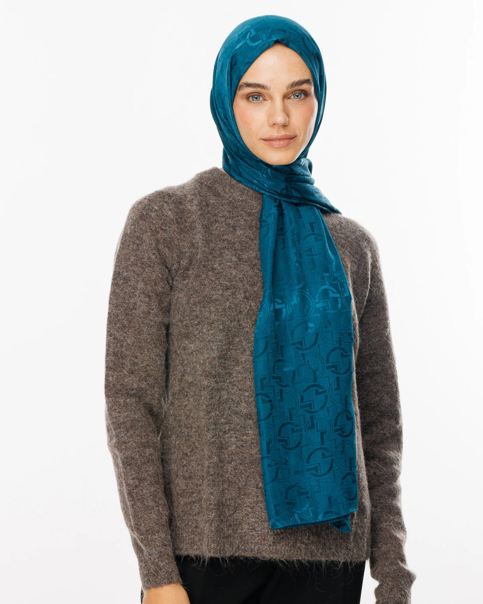 Petrol Mavisi Longar Desen Parlak Jakar Şal (JKRMNC0016)