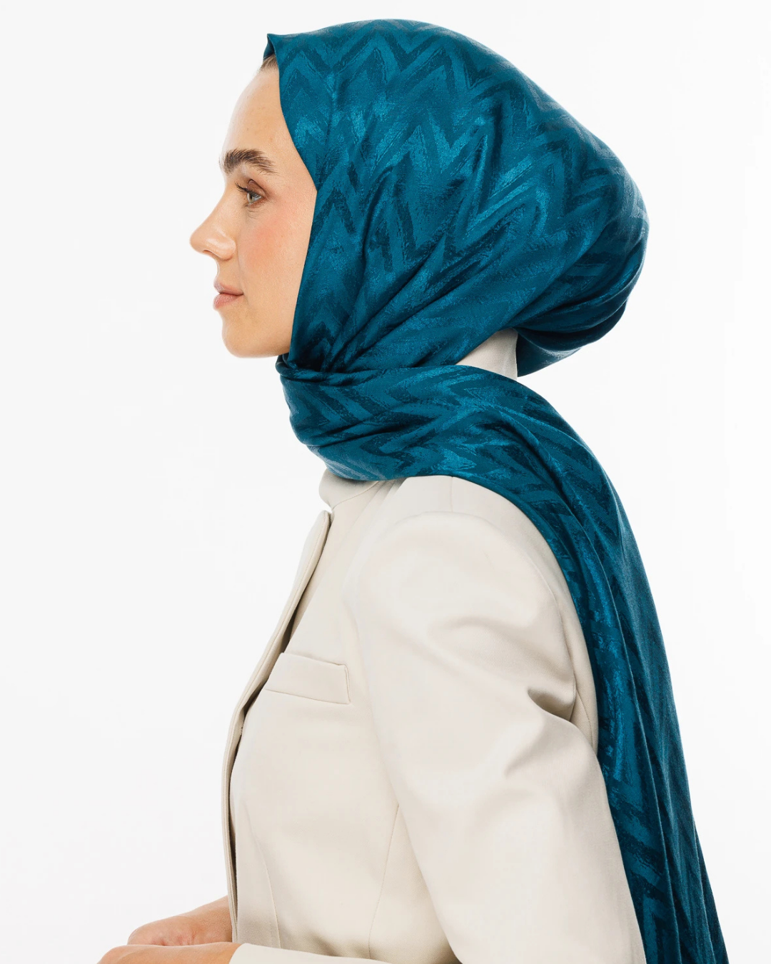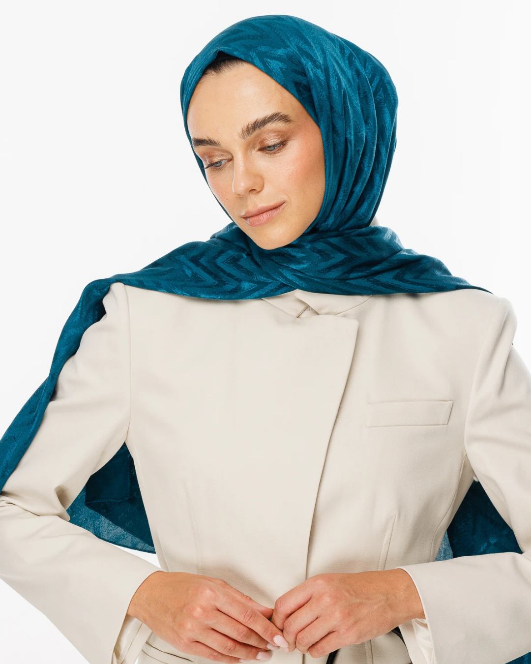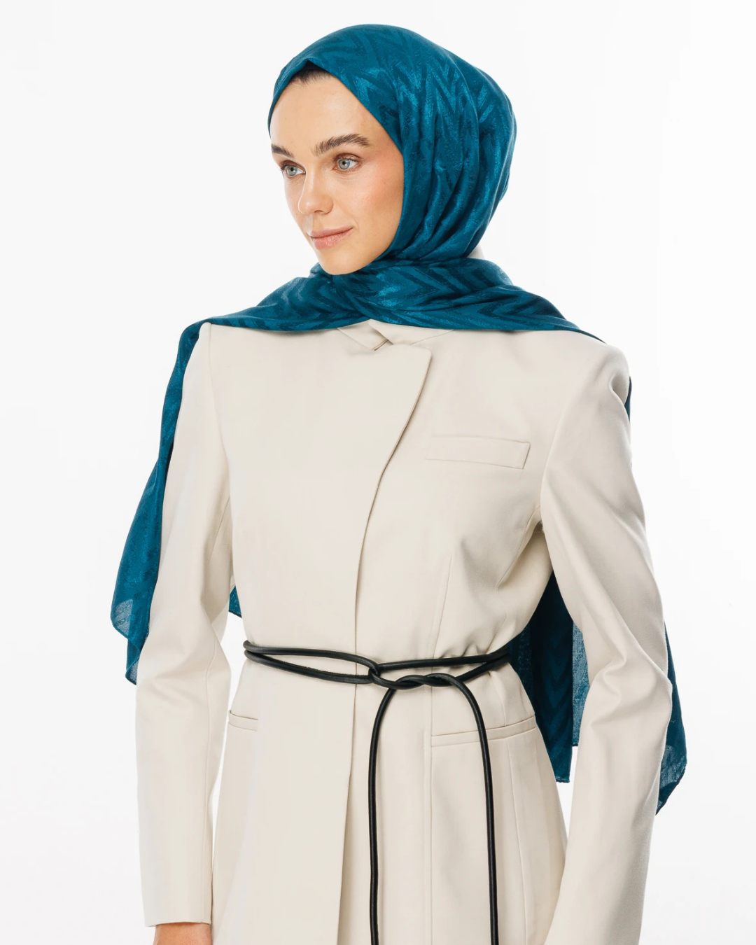 Petrol Mavisi Zikzak Desen Parlak Jakar Şal (JKRMNC0019)