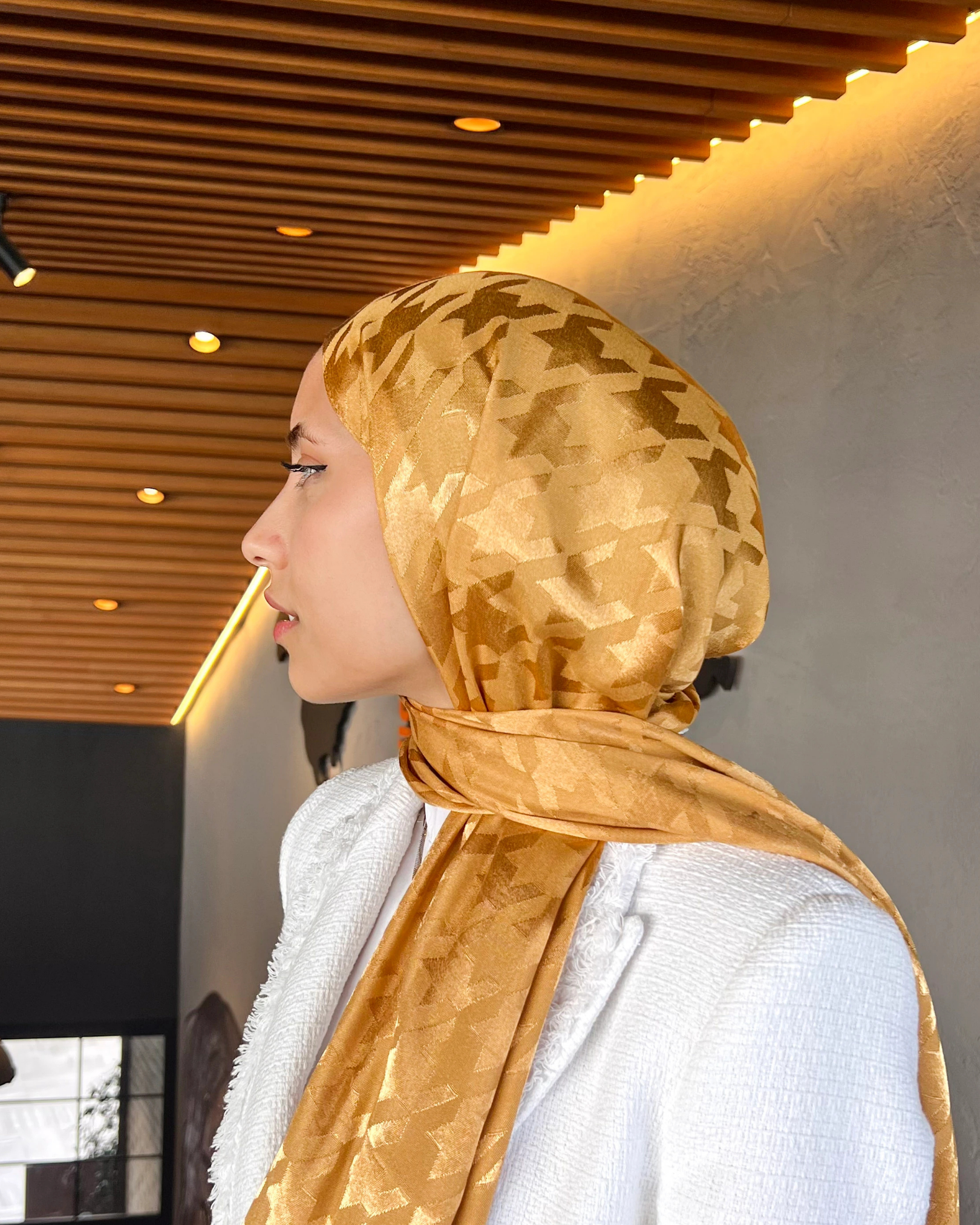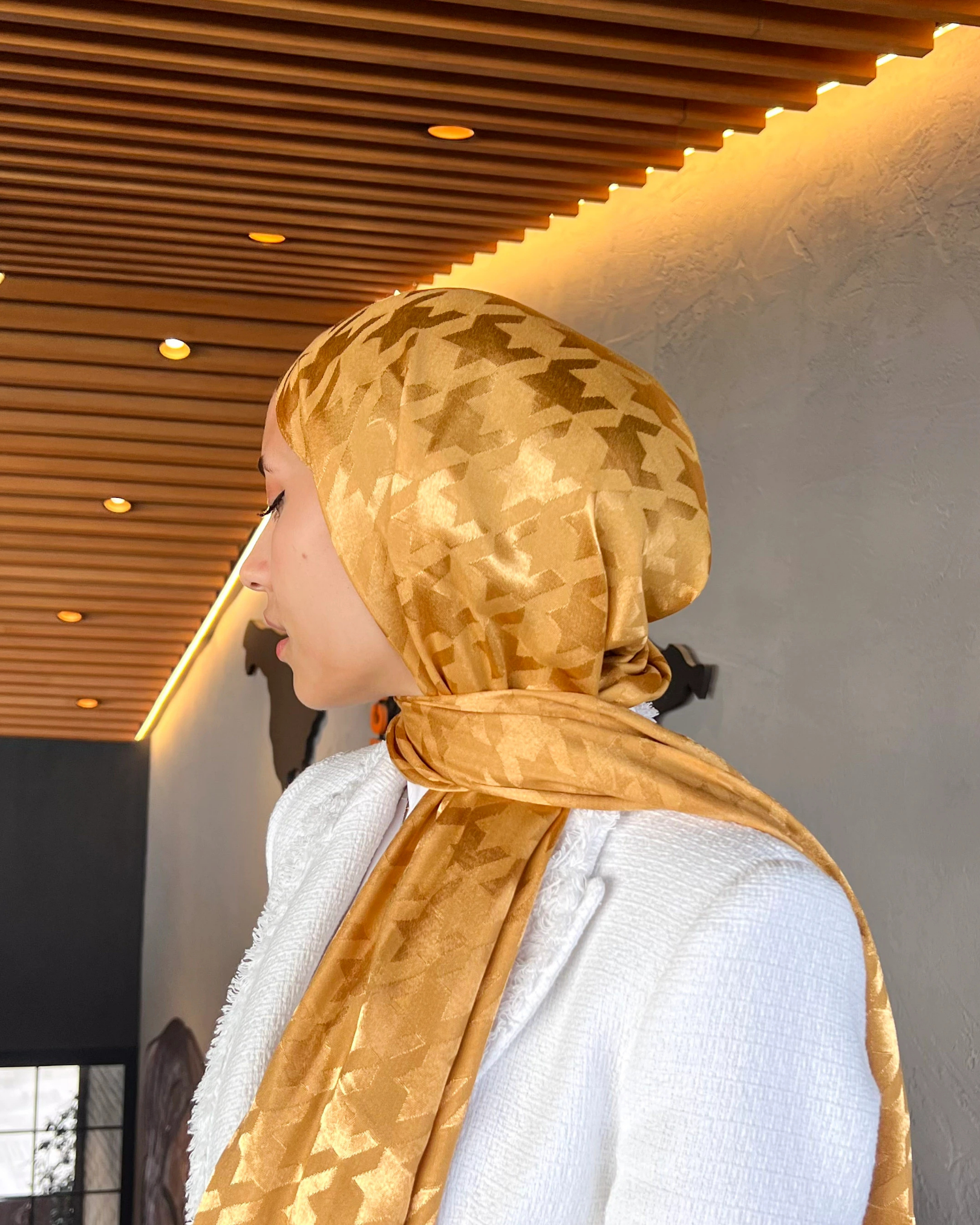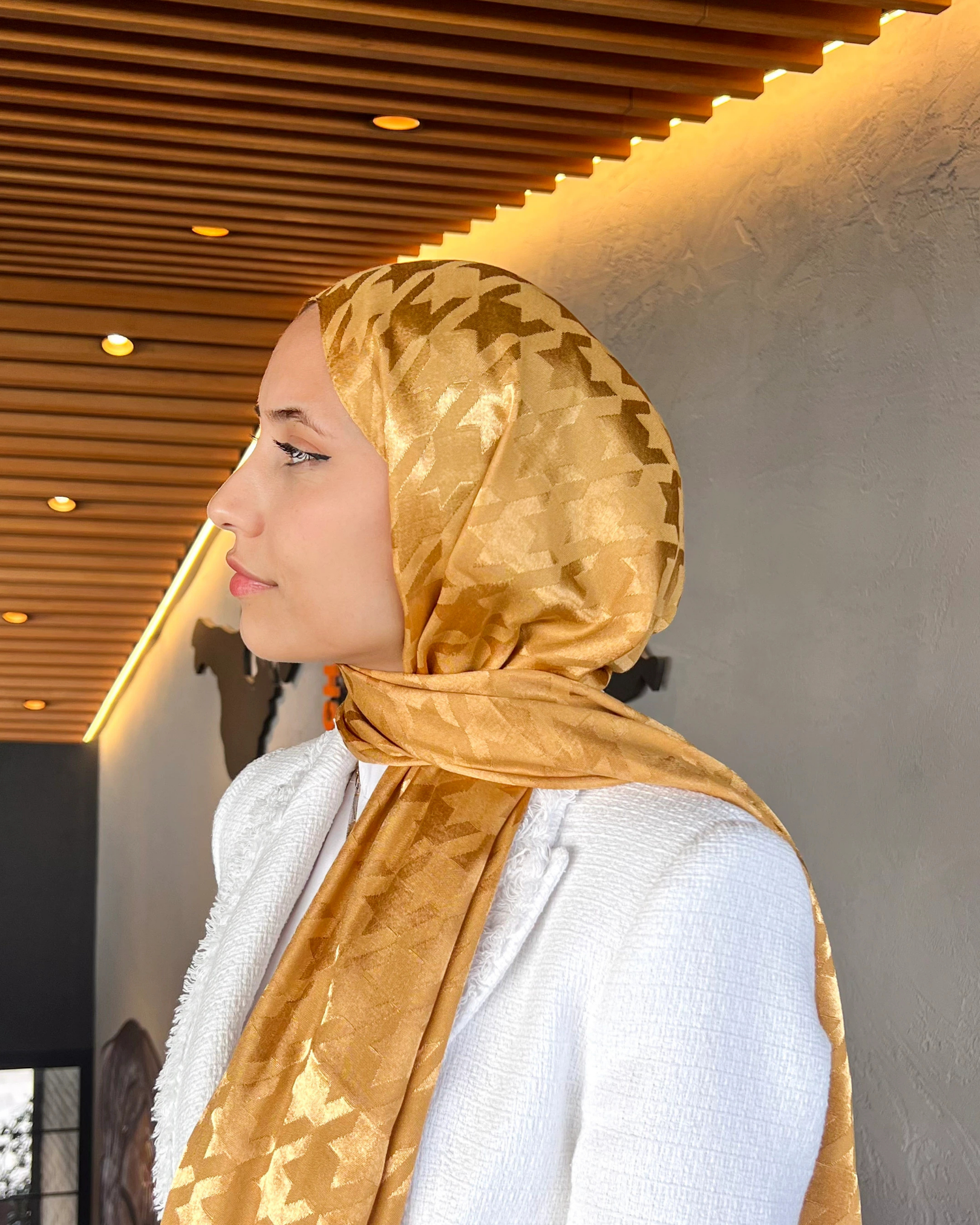 Safran Kazayağı Desen Parlak Jakar Şal (JKRMNC0017)