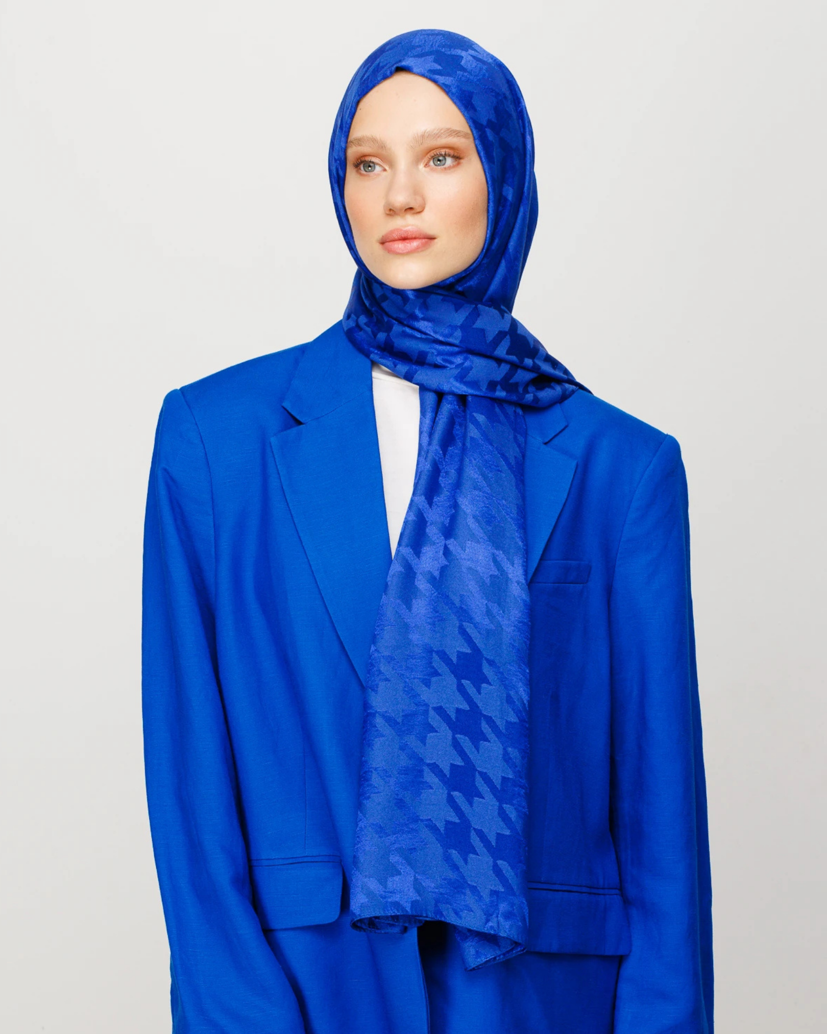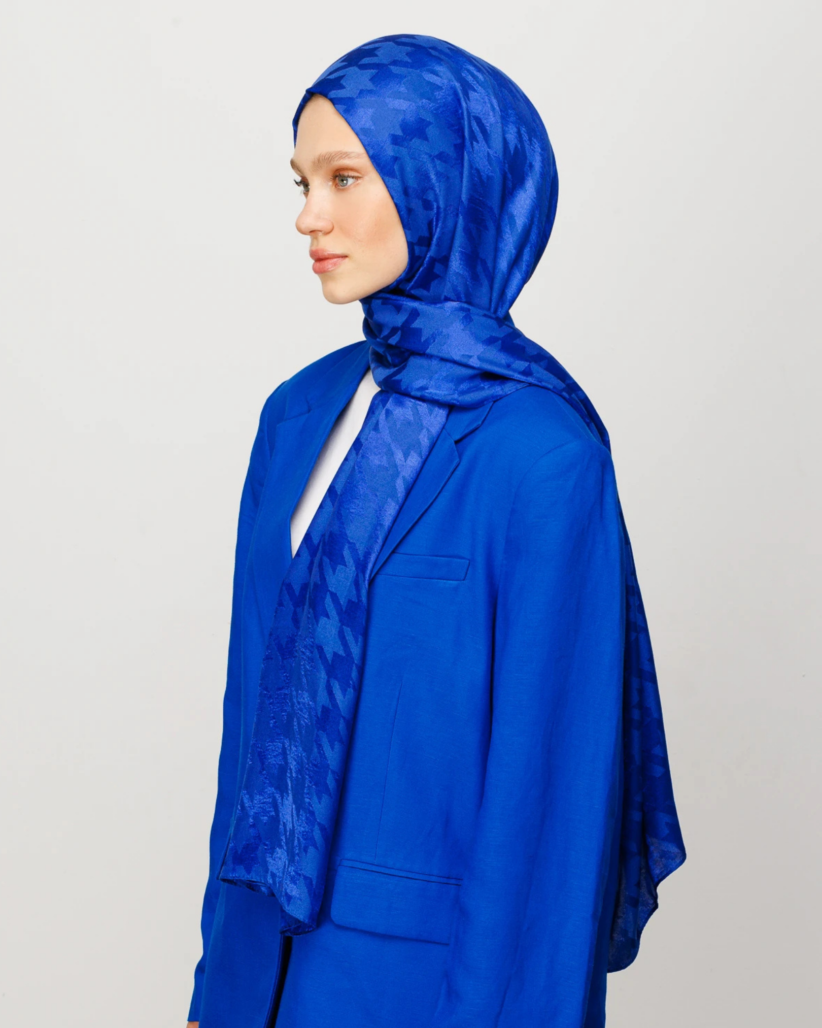 Saks Mavi Kazayağı Desen Parlak Jakar Şal (JKRMNC0017)