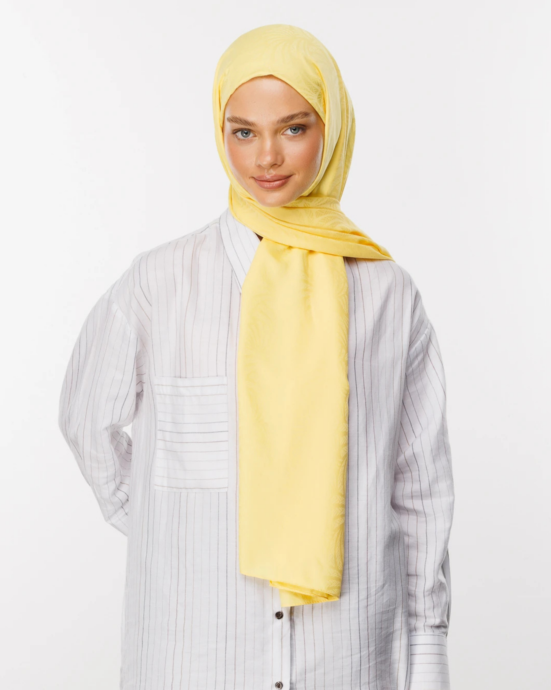 Sarı Artemis Desen İpeksi Jakar Şal (JKRMNC0022)
