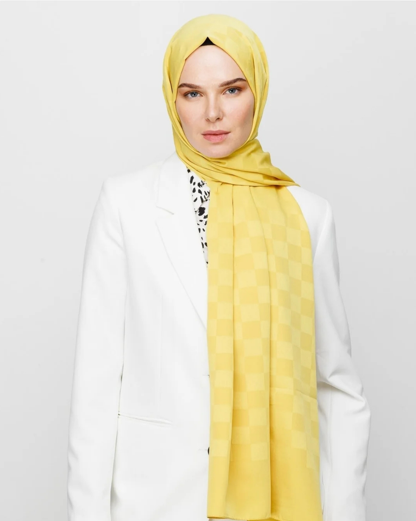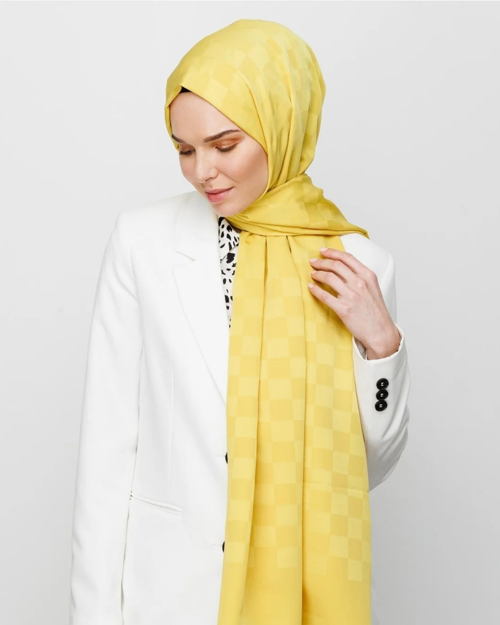 Sarı Dama Desen İpeksi Jakar Şal (JKRMNC0014)