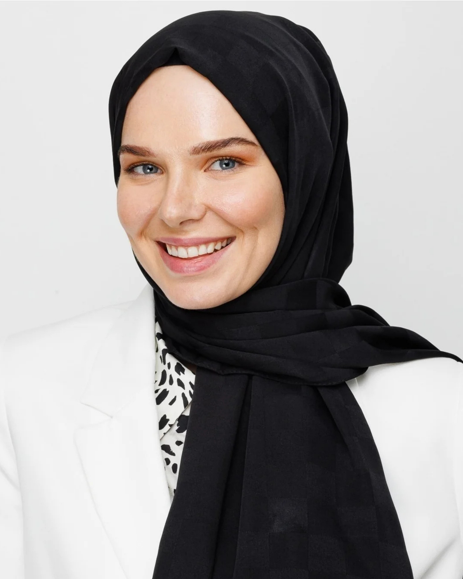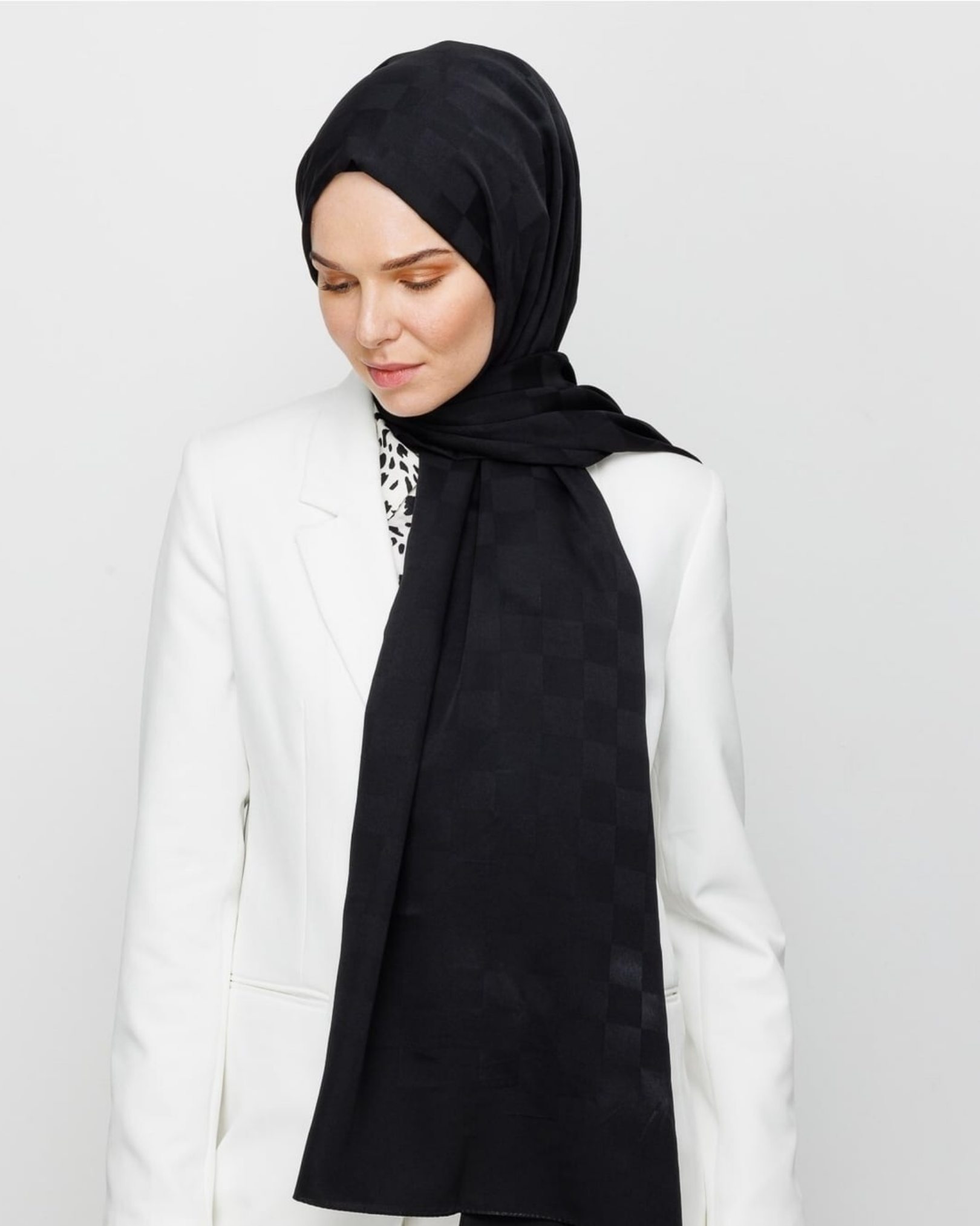Siyah Dama Desen İpeksi Jakar Şal (JKRMNC0014)