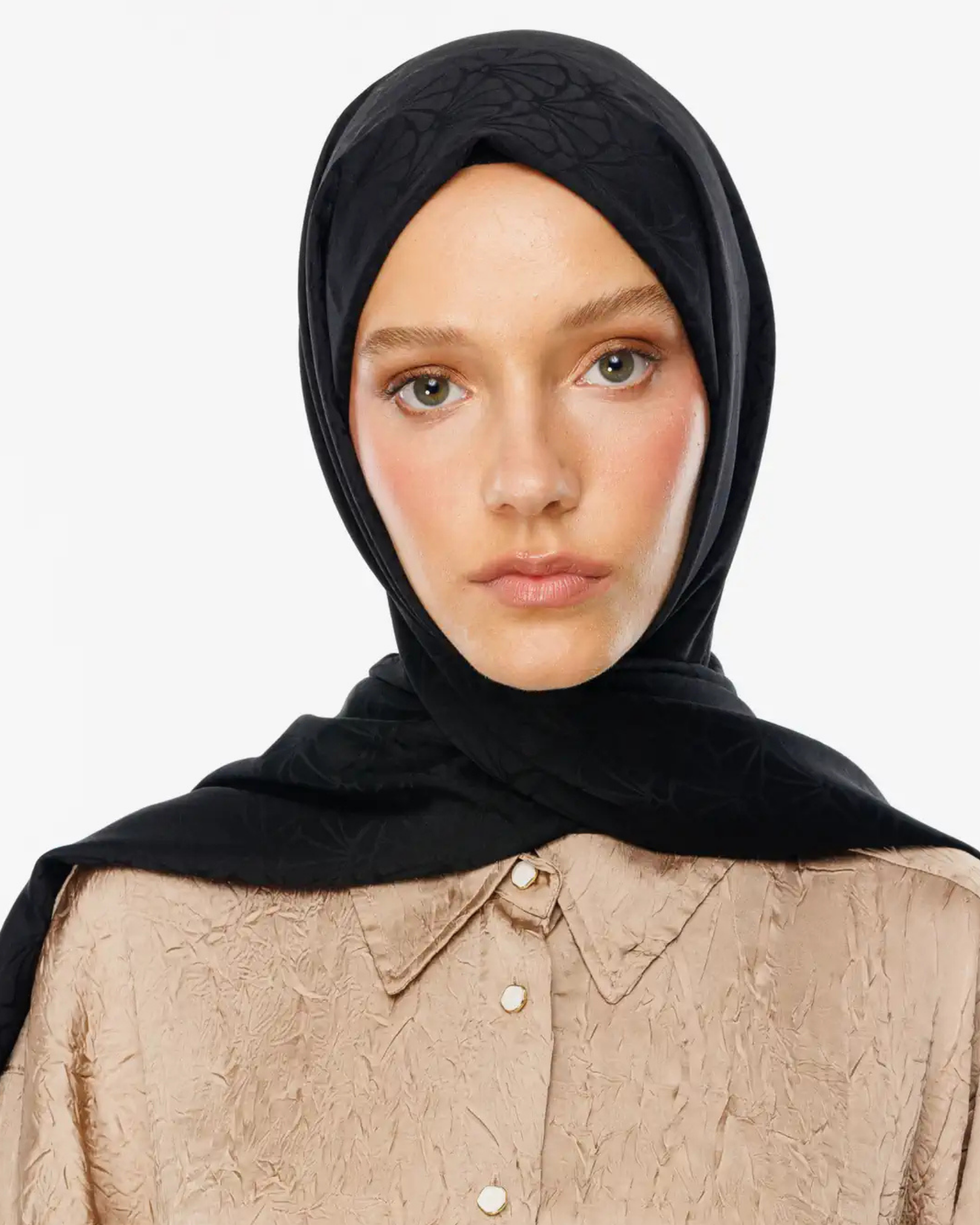 Siyah Lotus Desen İpeksi Jakar Şal (JKRMNC0024)