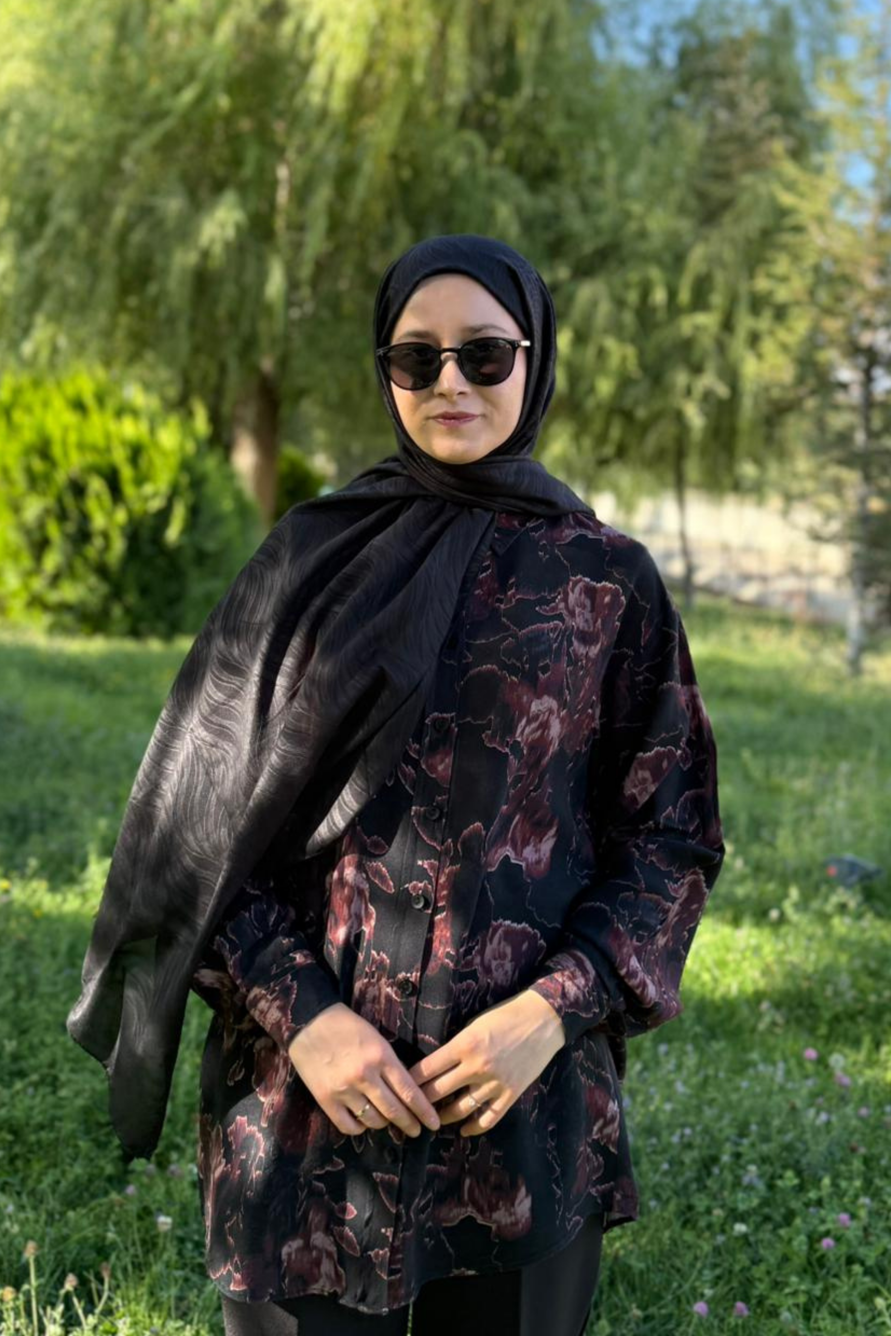 Siyah Su Yolu Lyocell Bambu Jakar Şal (S-LYOCELLSU-17)