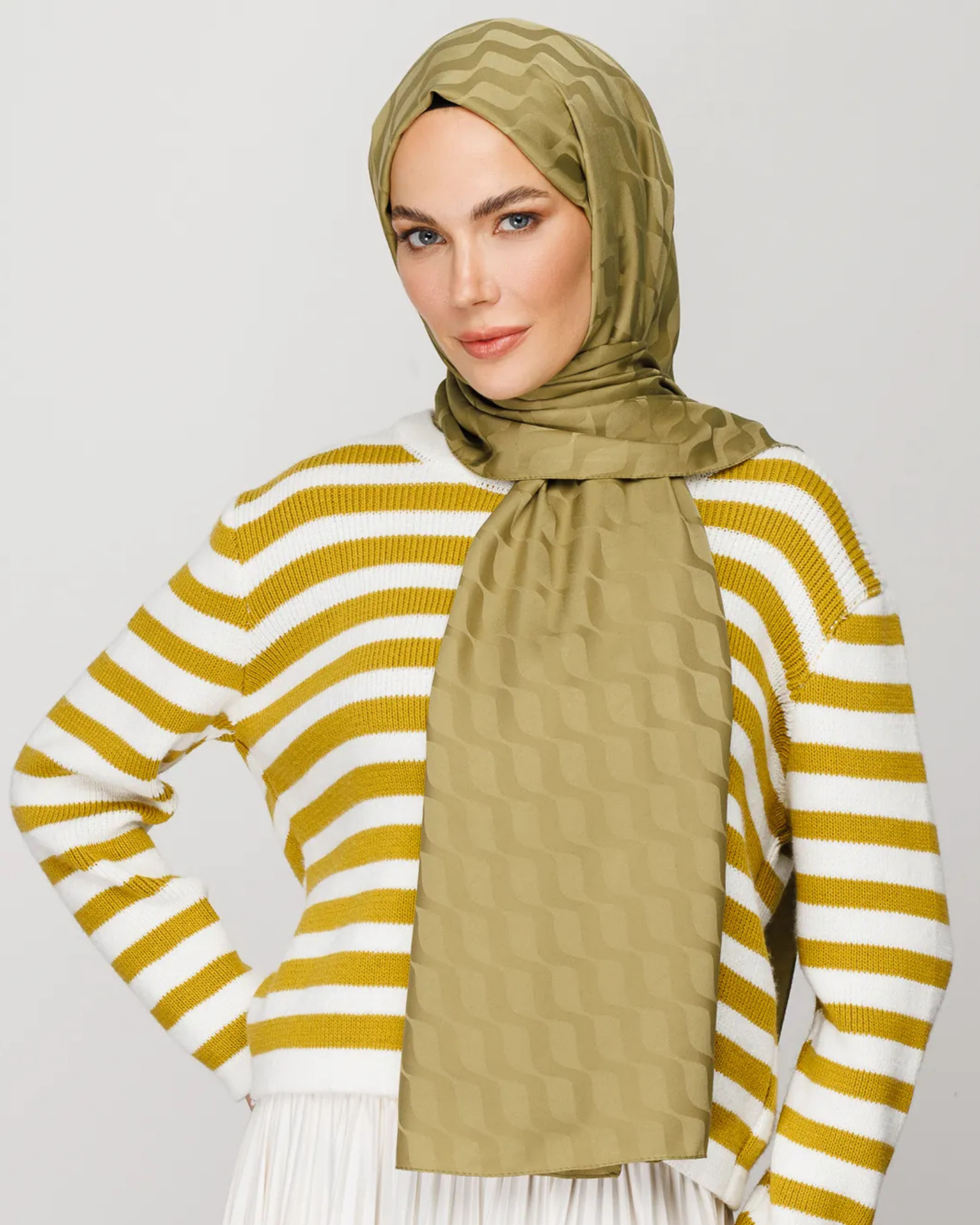 Soft Yeşil Su Yolu Desen İpeksi Jakar Şal (JKRMNC0020)