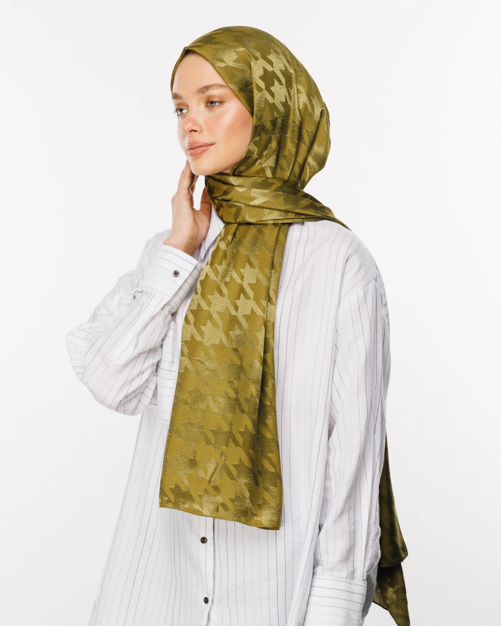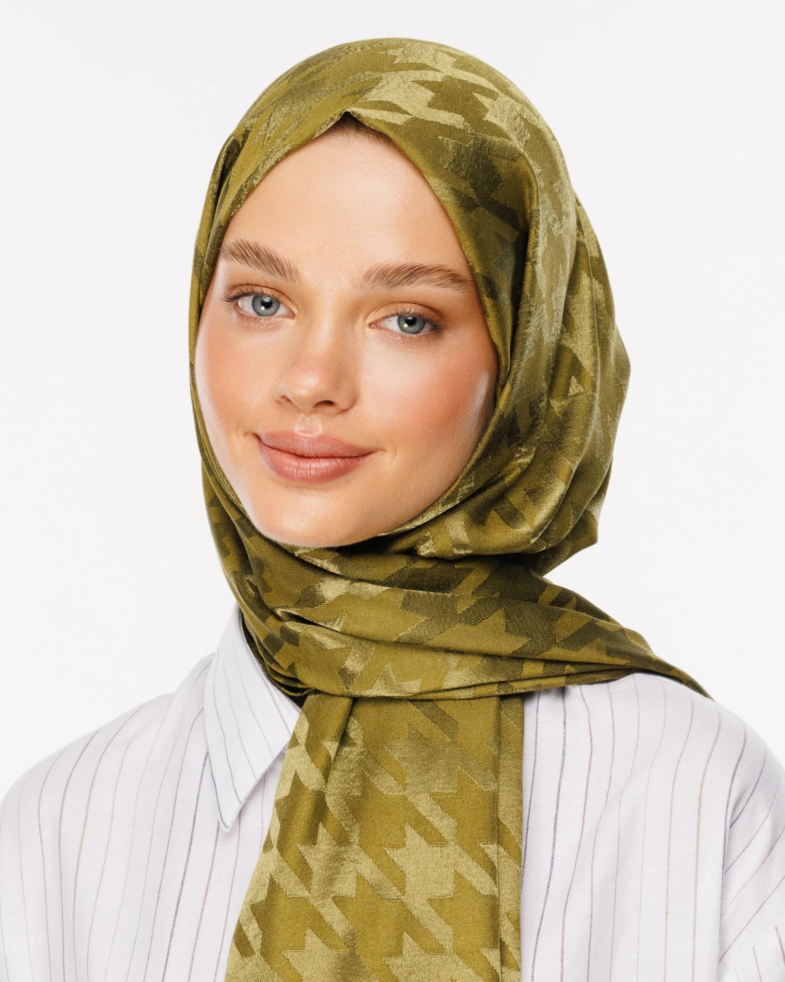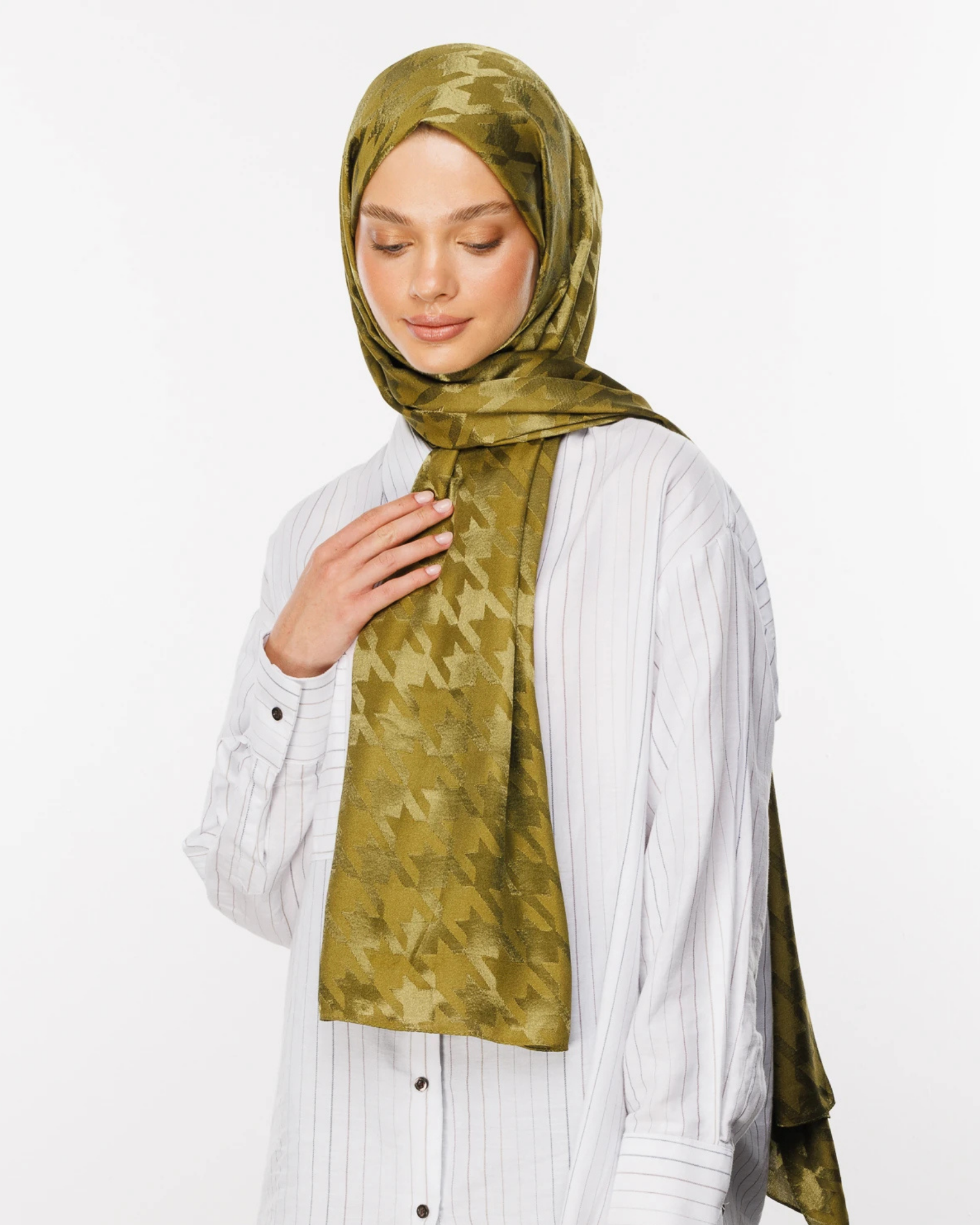 Soft Yeşil Kazayağı Desen Parlak Jakar Şal (JKRMNC0017)