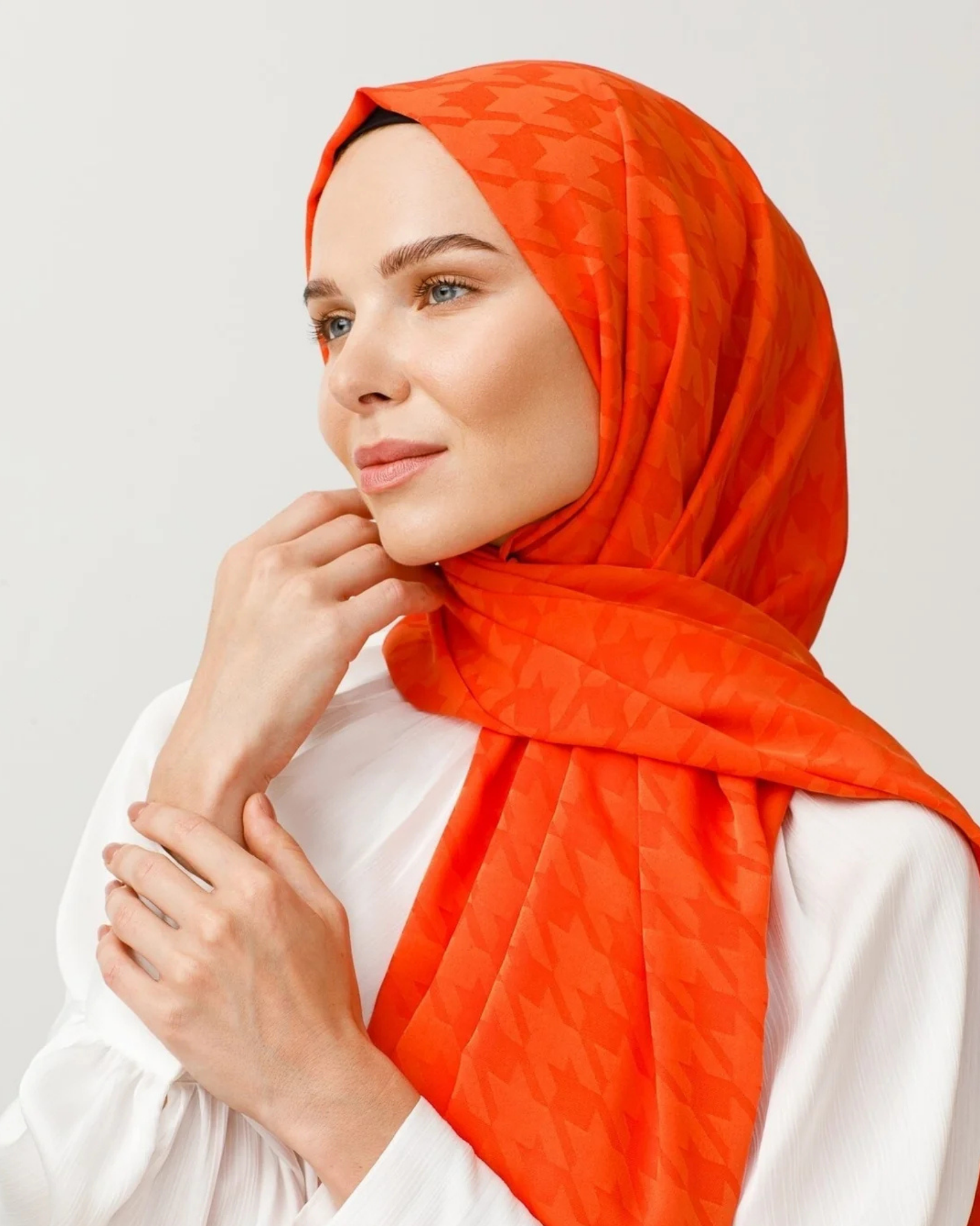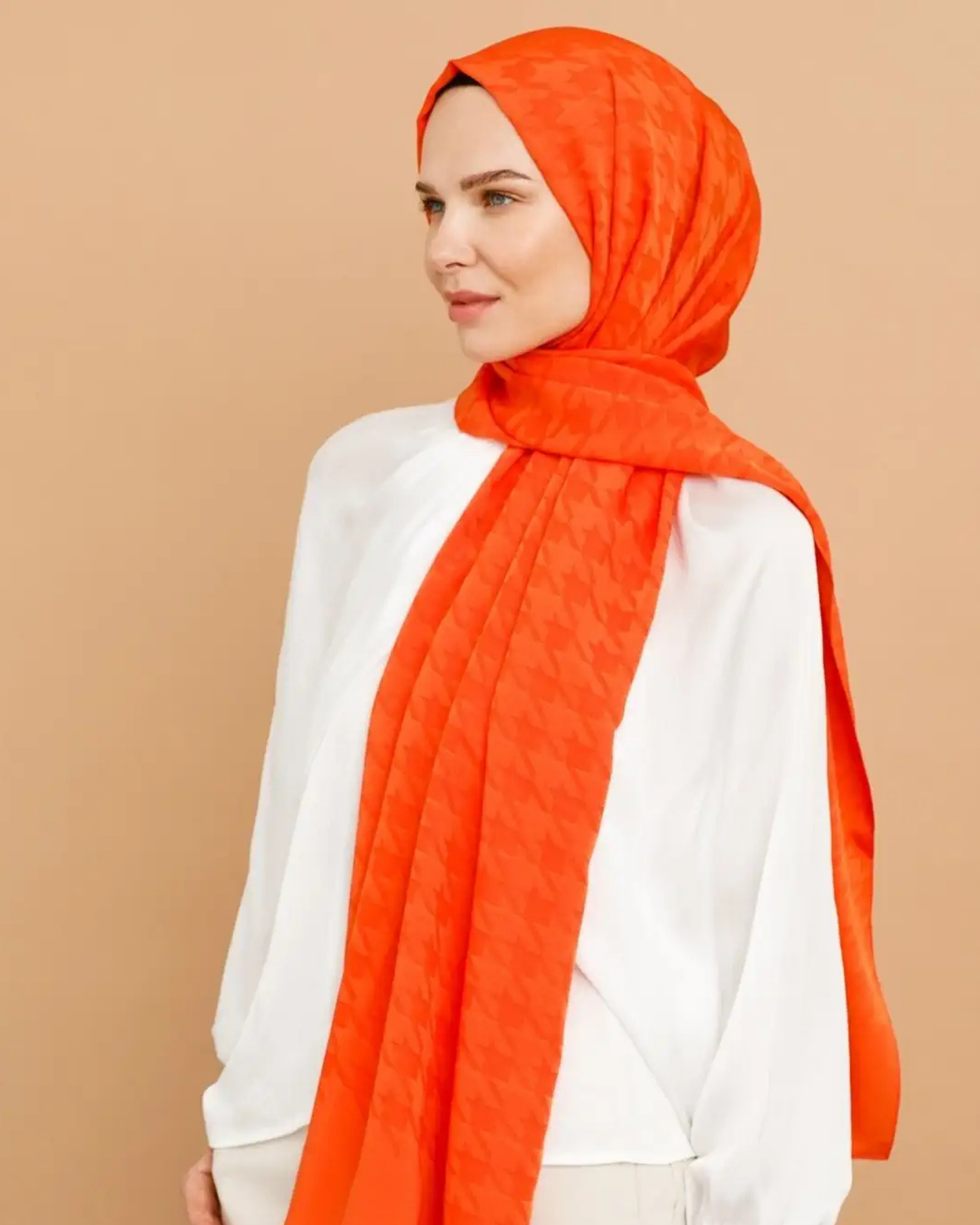 Turuncu Kazayağı Desen İpeksi Jakar Şal (JKRMNC0005)