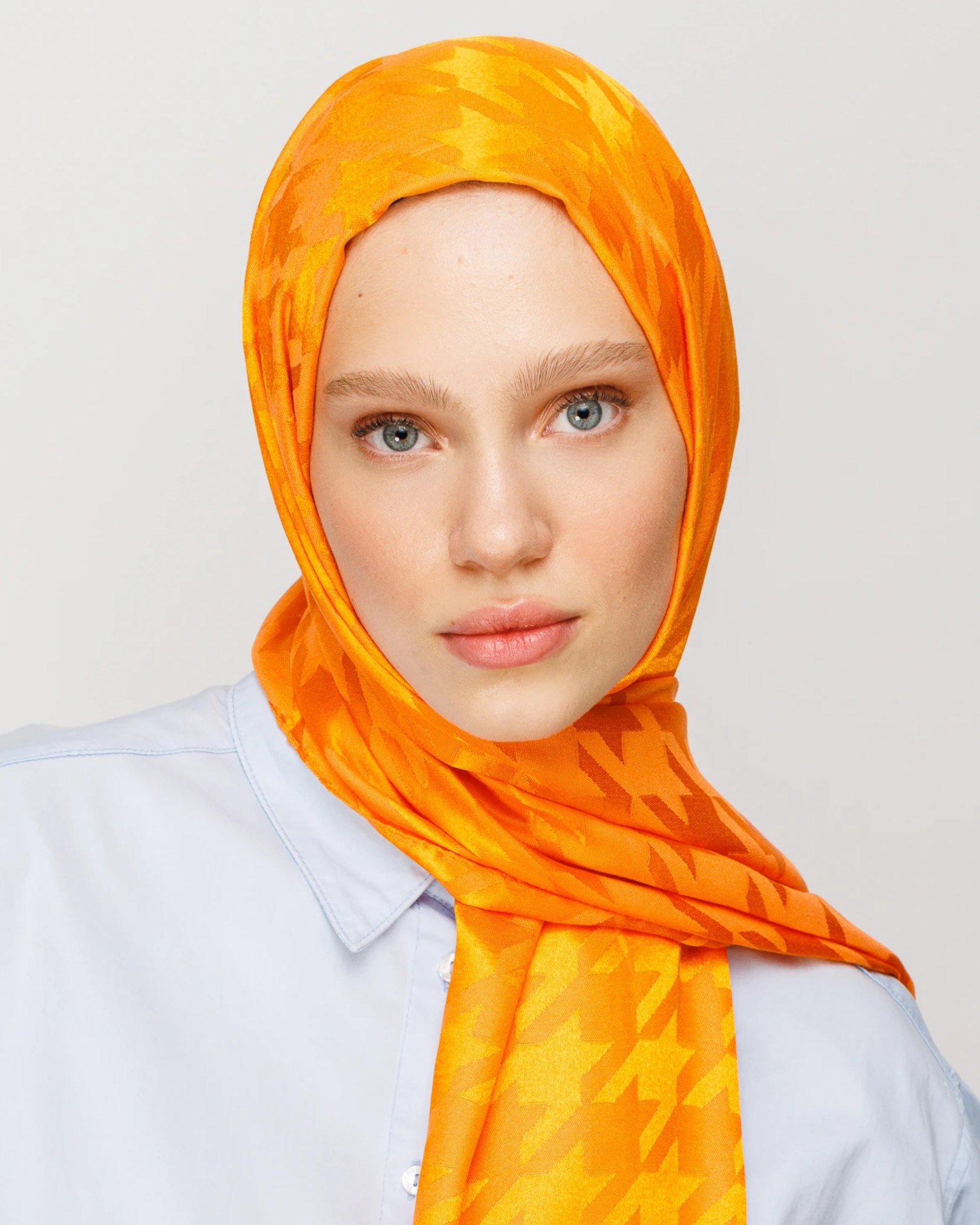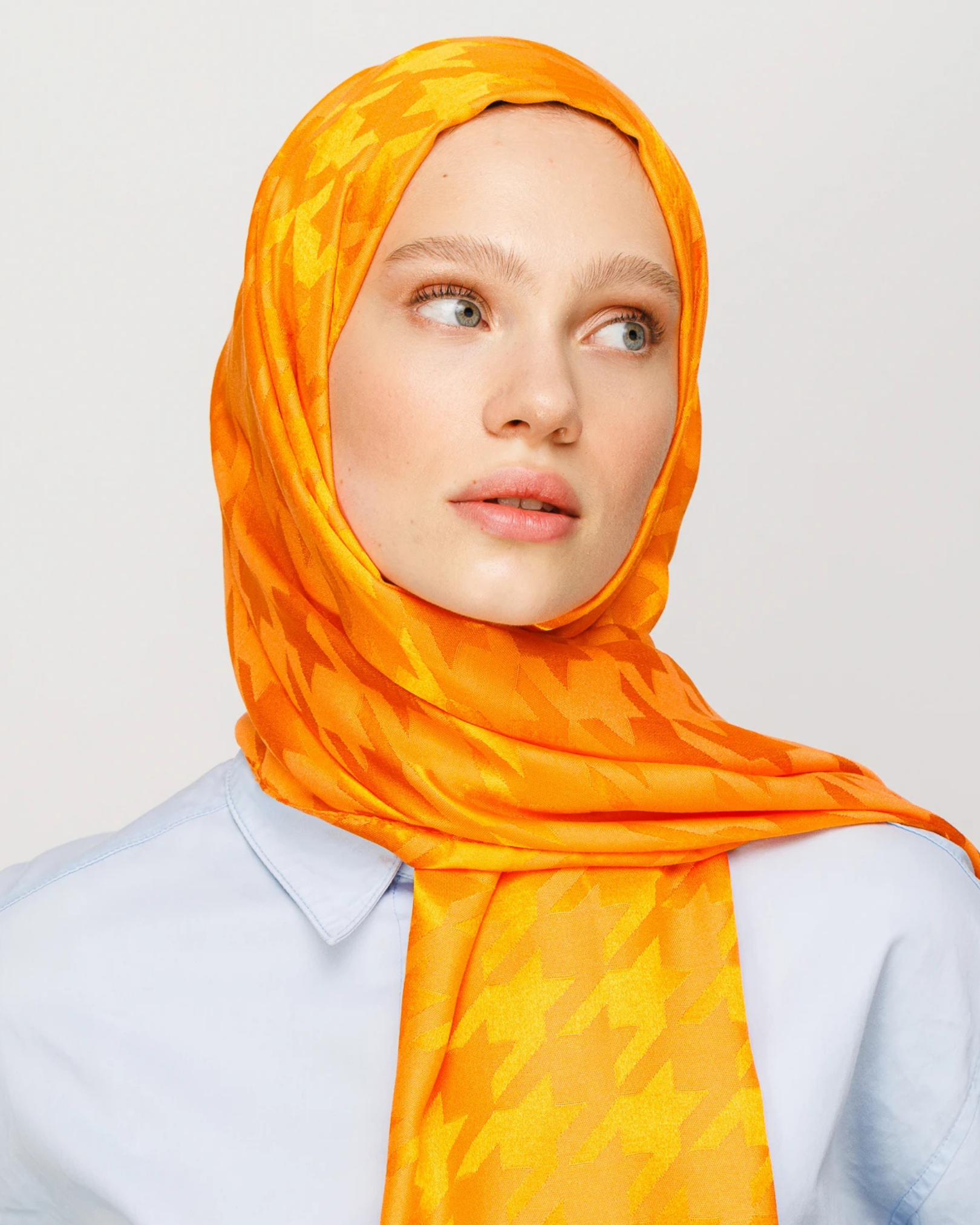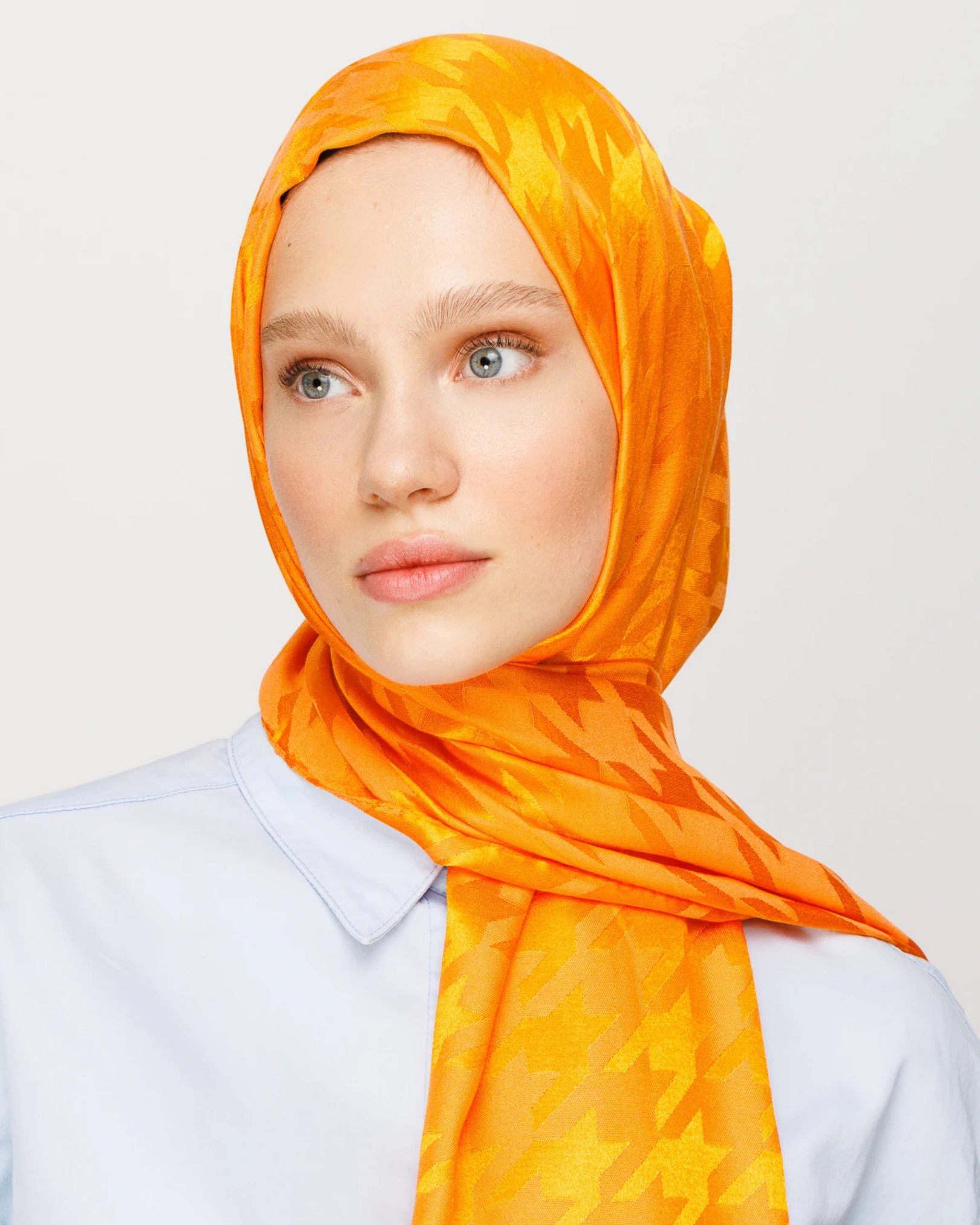 Turuncu Kazayağı Desen Parlak Jakar Şal (JKRMNC0017)