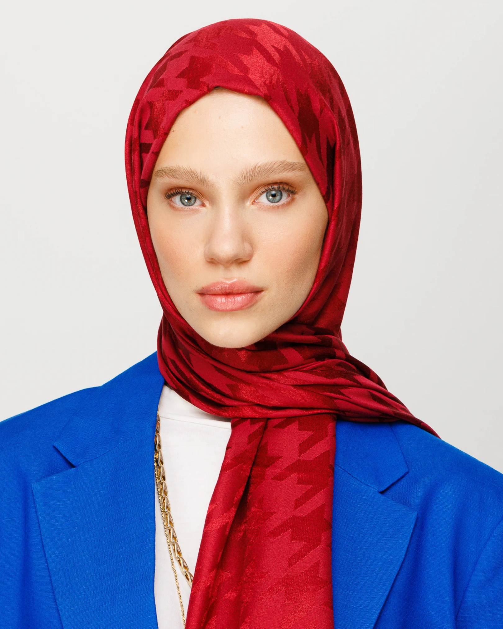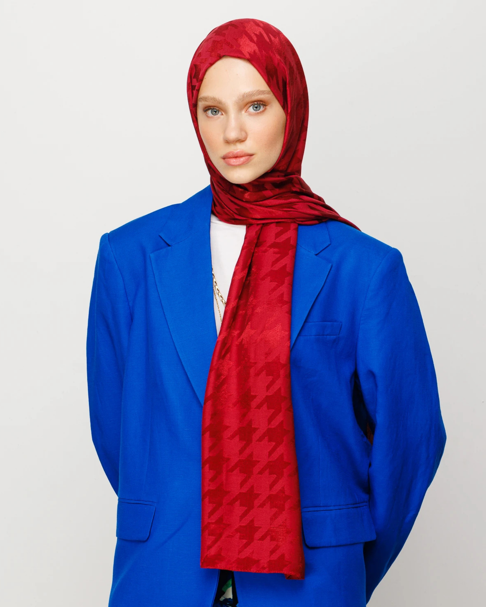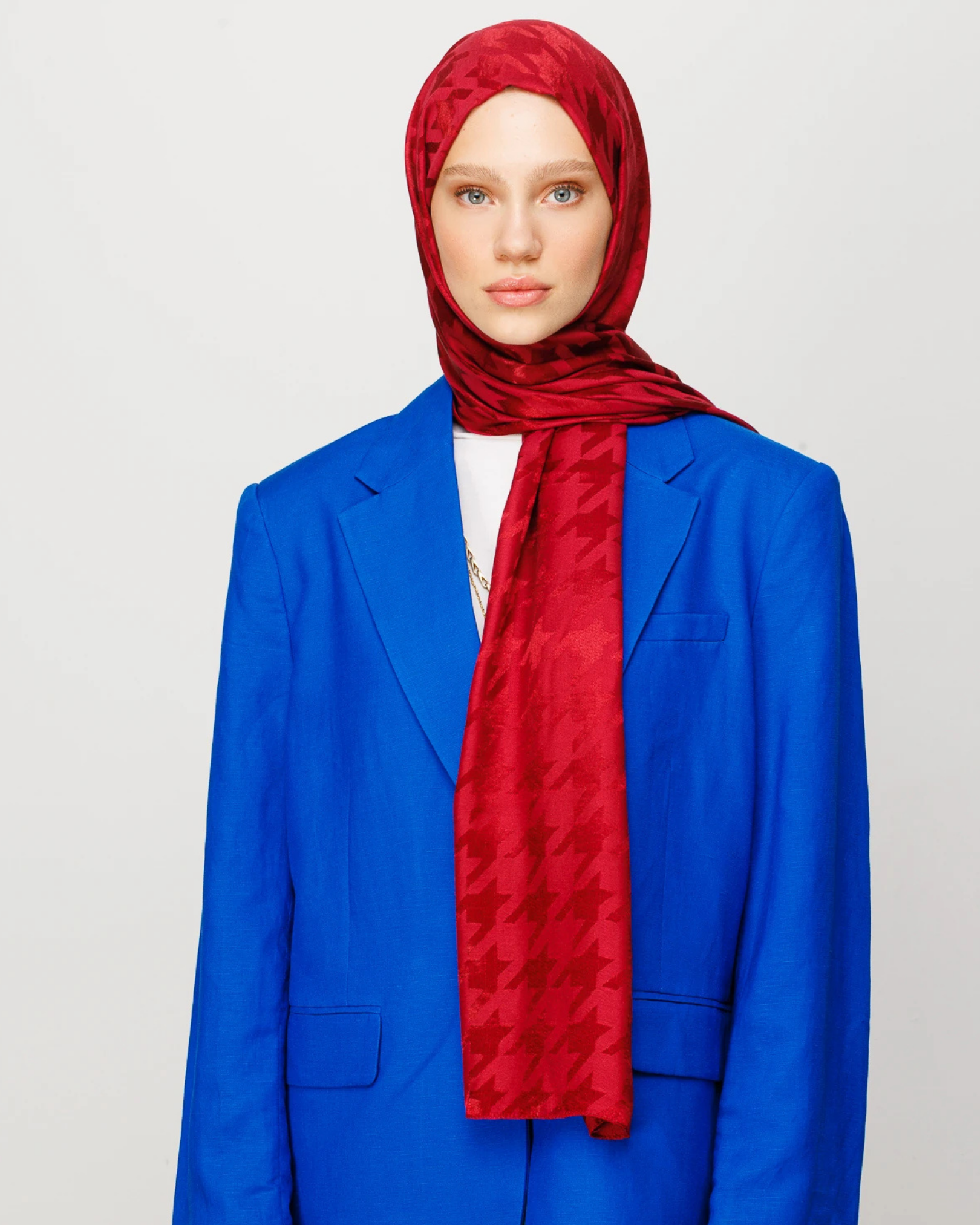 Vişne Çürüğü Kazayağı Desen Parlak Jakar Şal (JKRMNC0017)