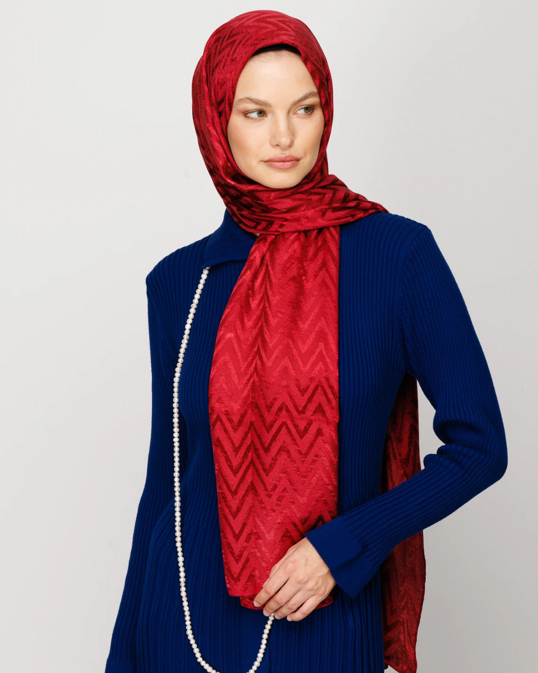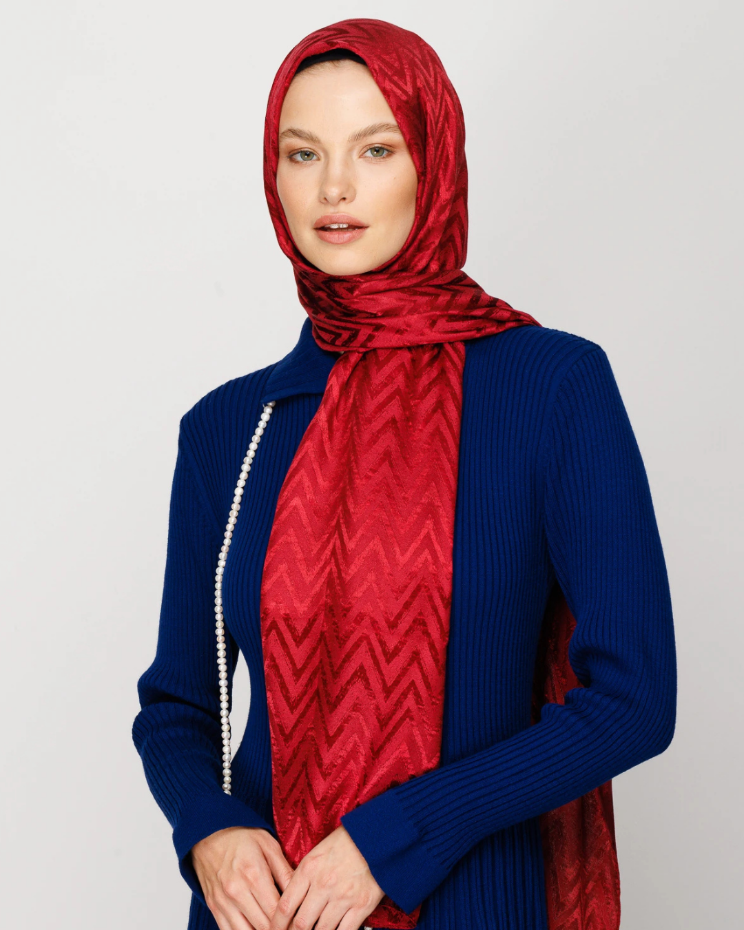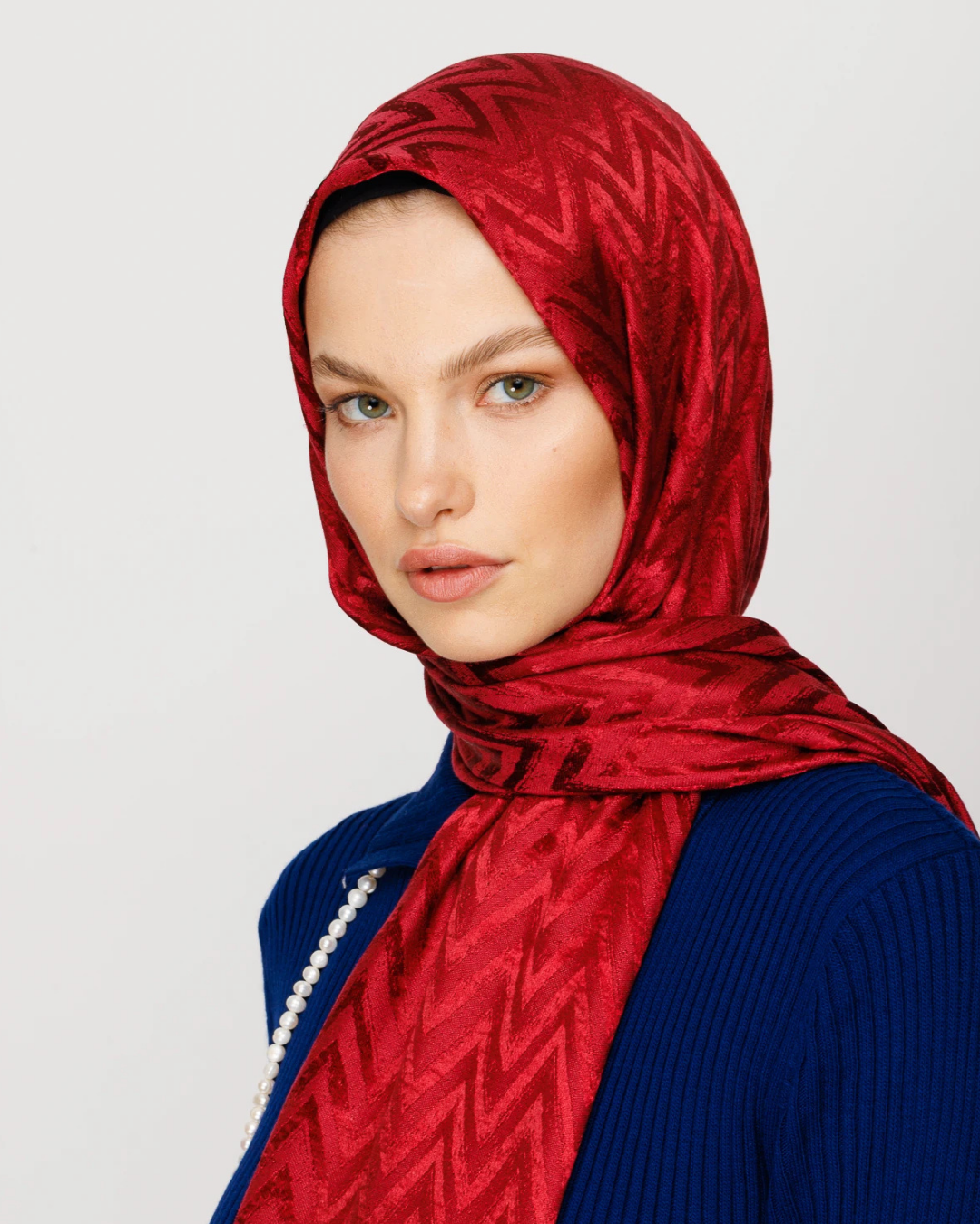 Vişne Çürüğü Zikzak Desen Parlak Jakar Şal (JKRMNC0019)