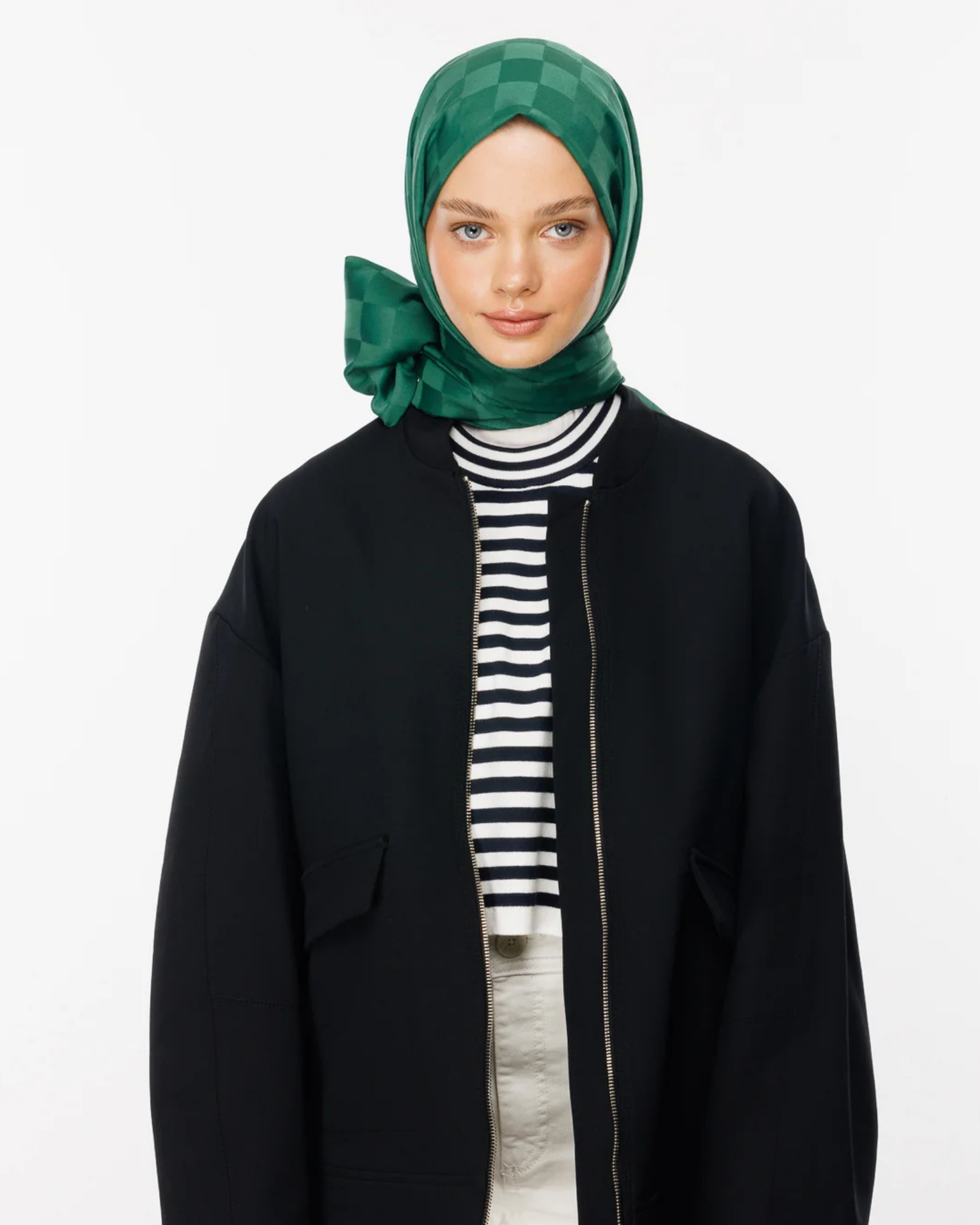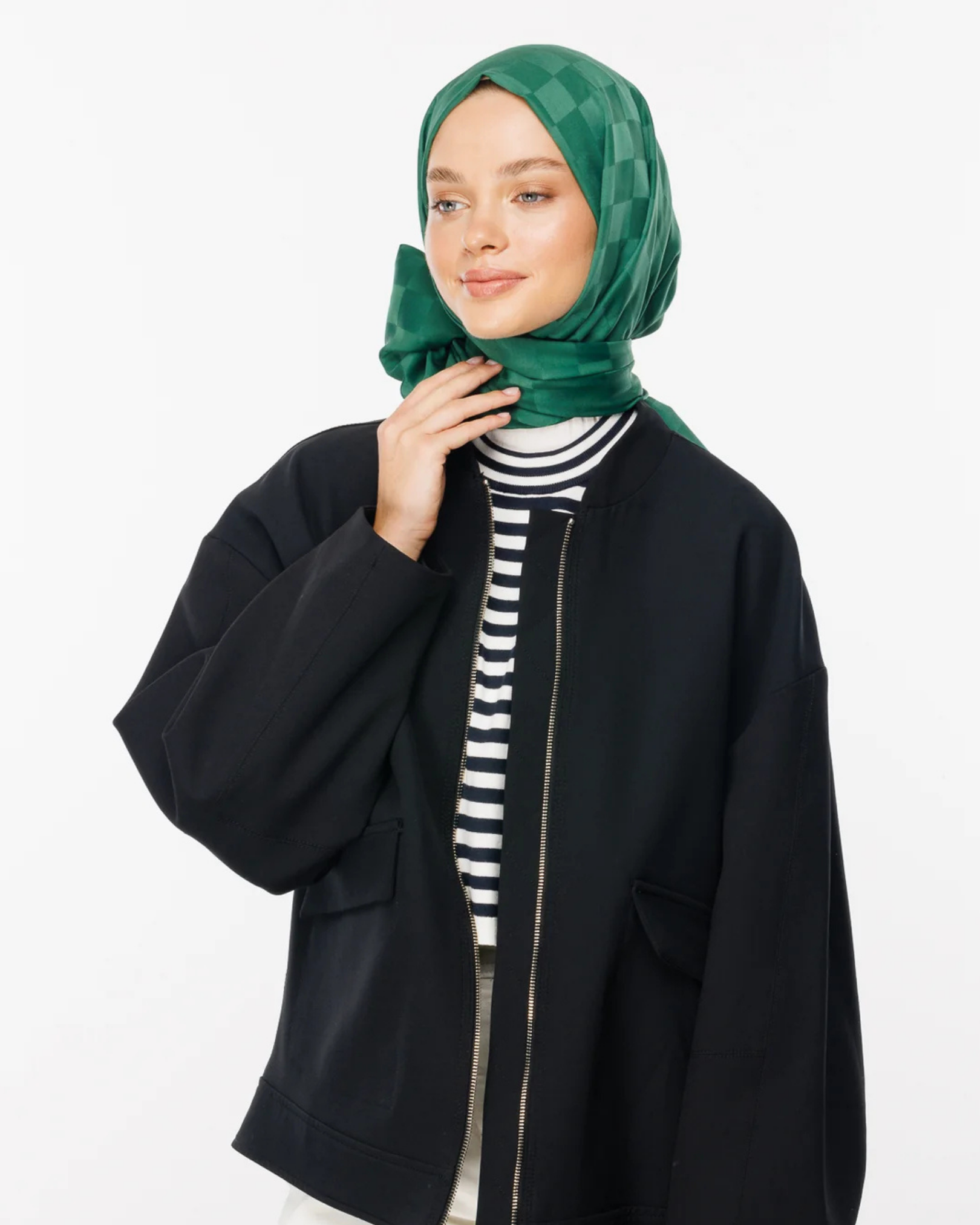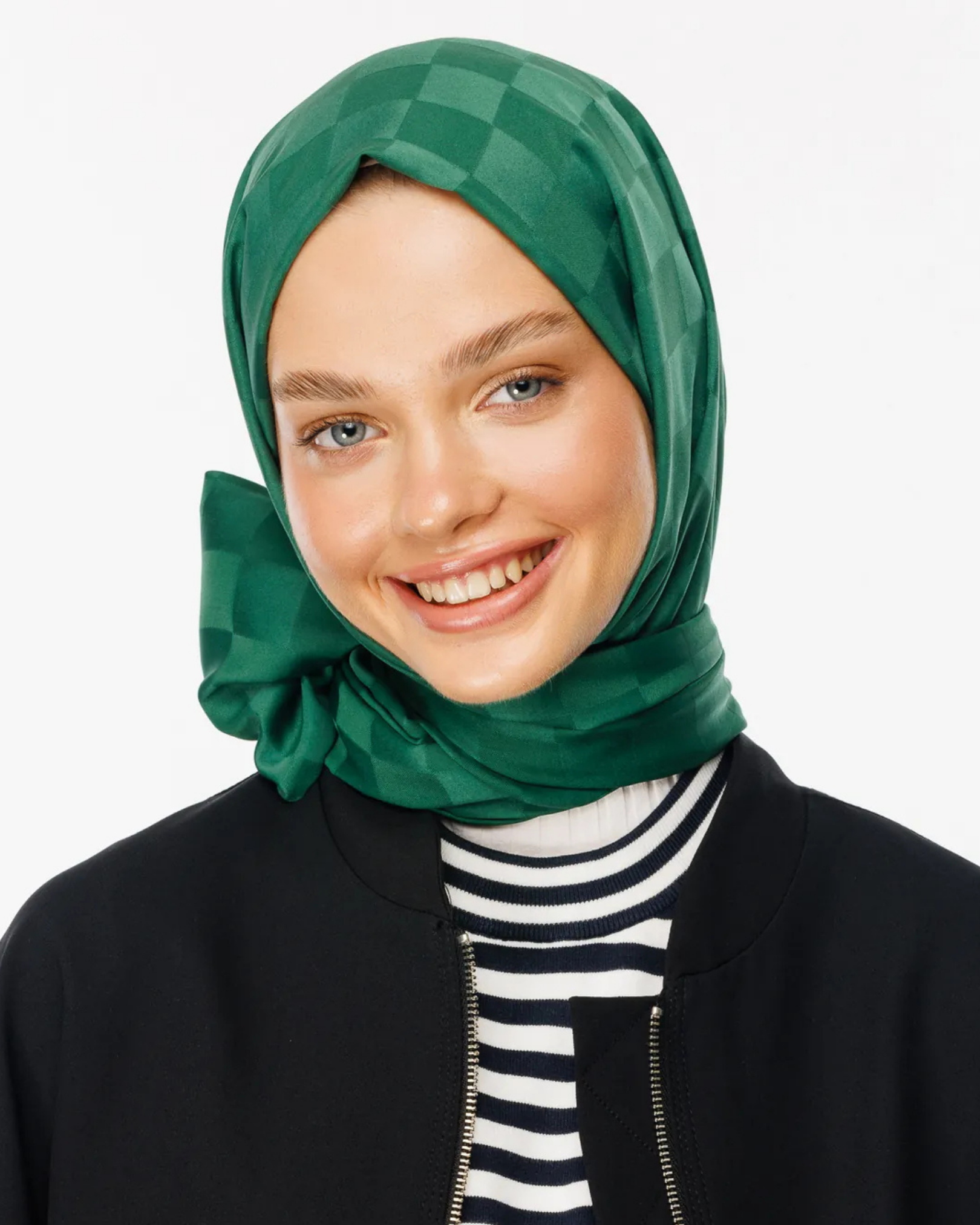 Yeşim Dama Desen İpeksi Jakar Şal (JKRMNC0014)