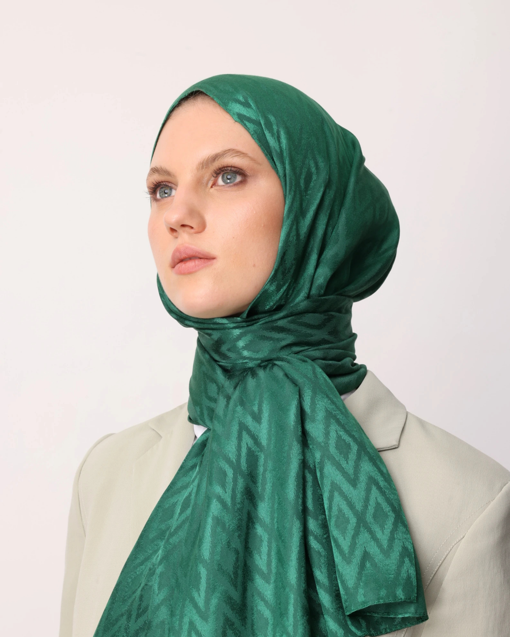 Yeşim Karo Desen Parlak Jakar Şal (JKRMNC0015)