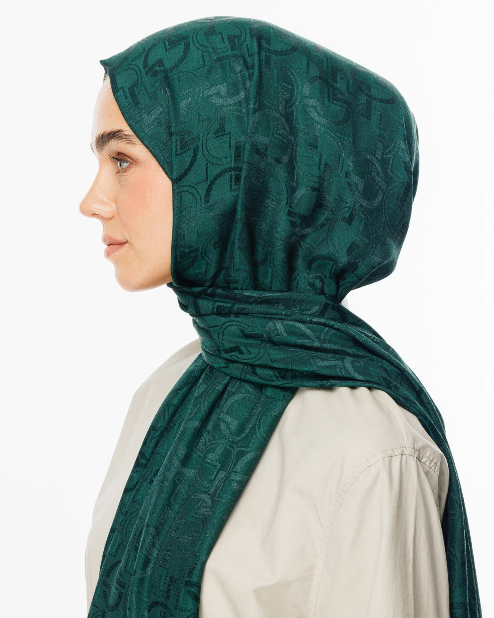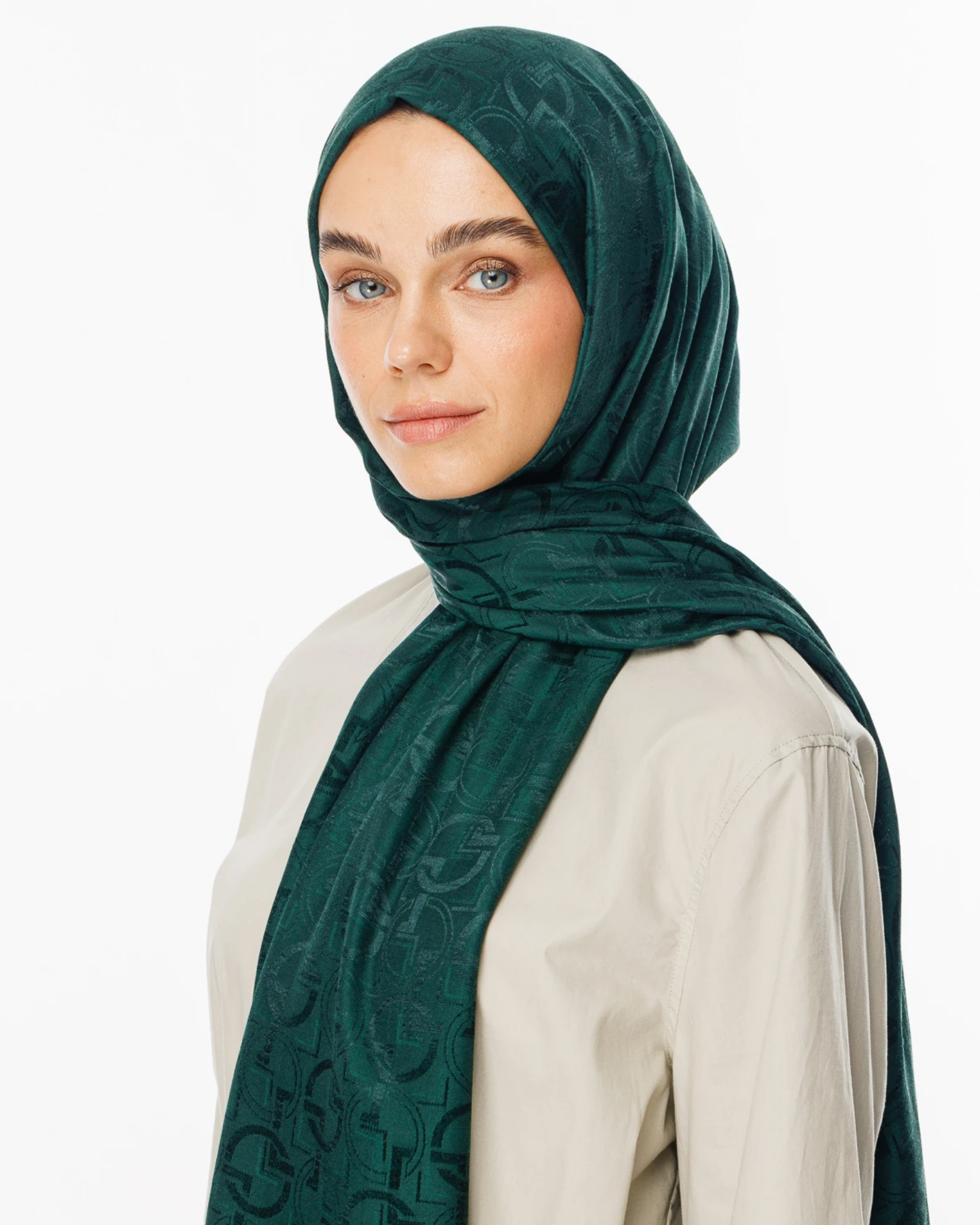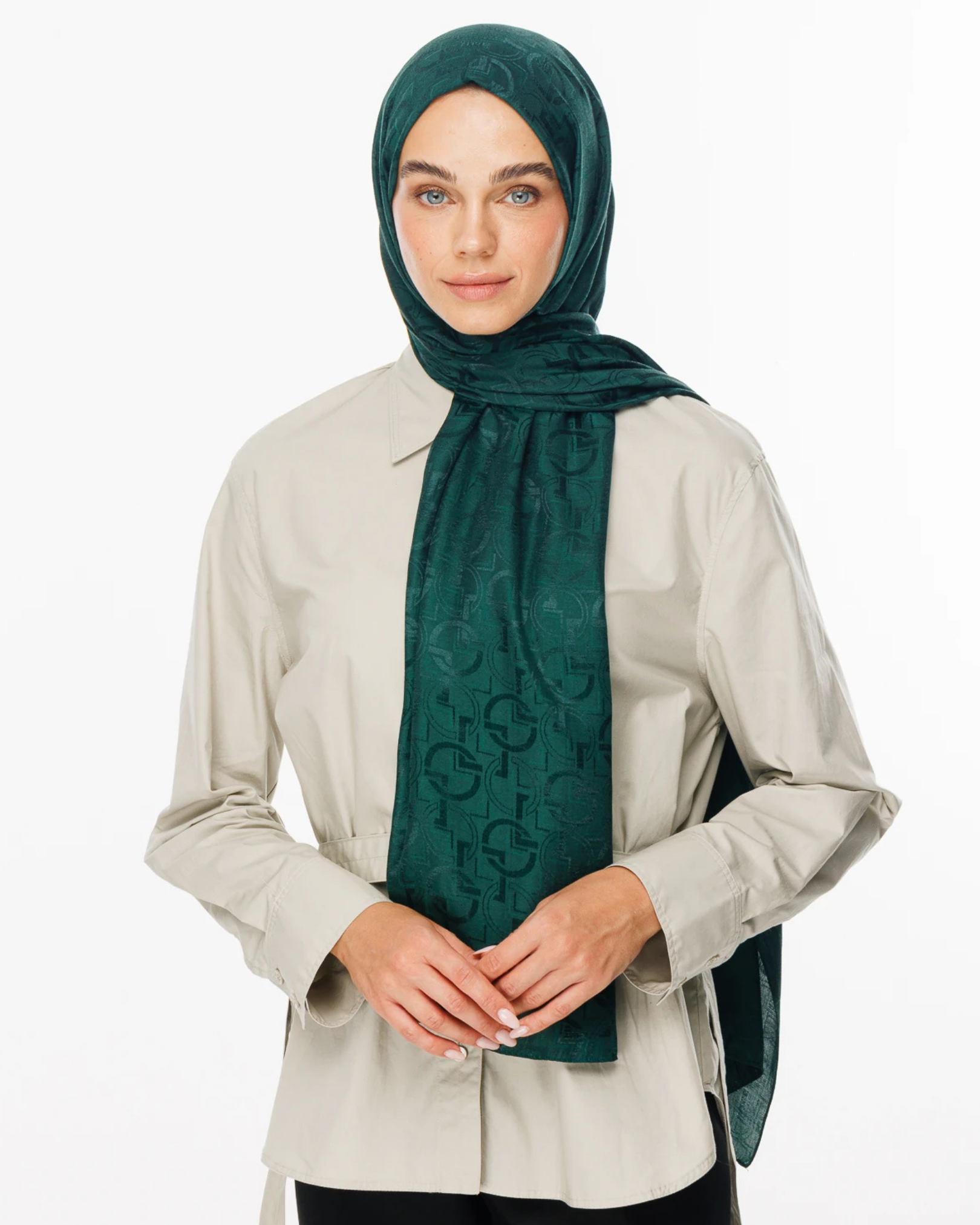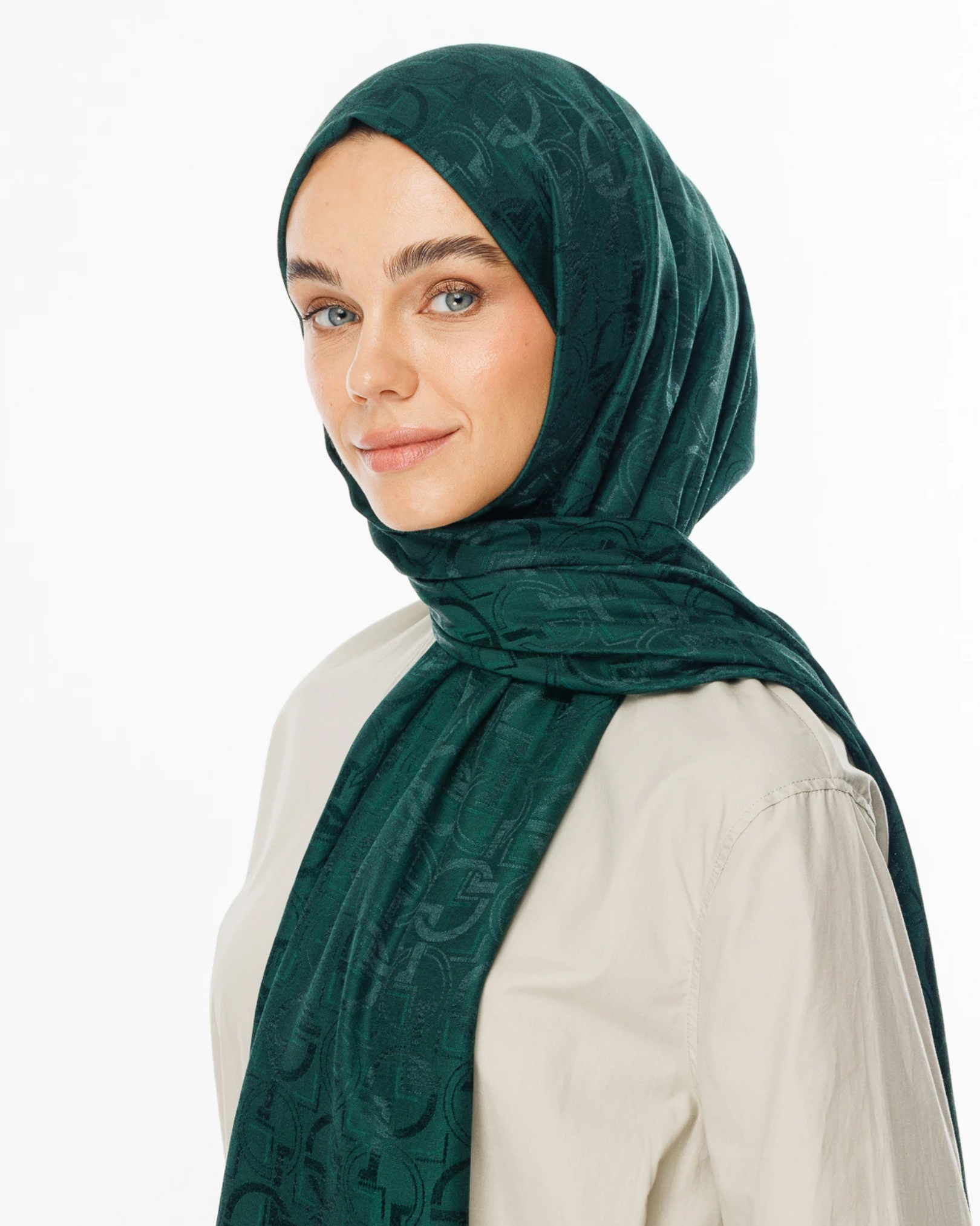 Zümrüt Longar Desen Parlak Jakar Şal (JKRMNC0016)